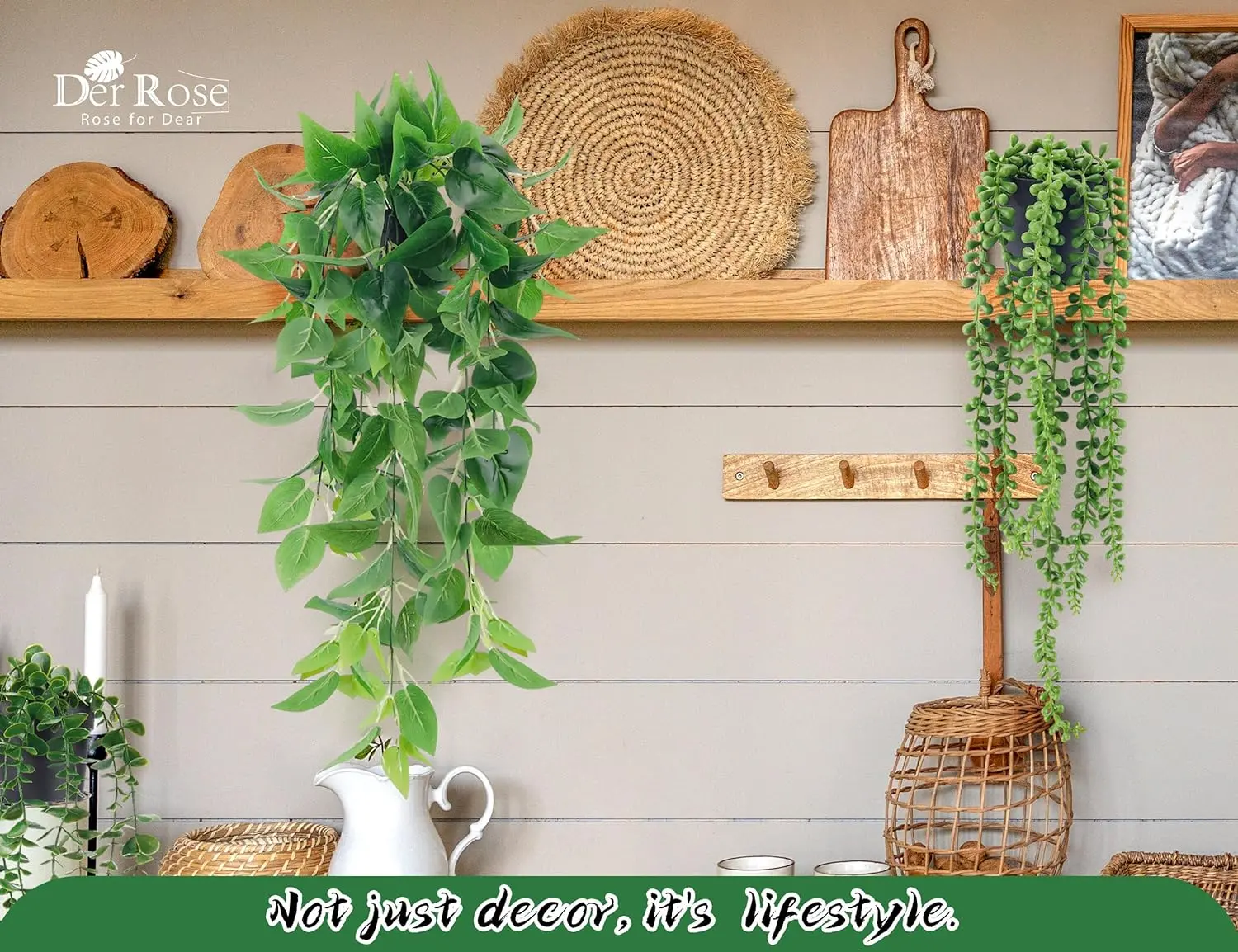 ·【Bookcase Decor】 Whether you're looking to add greenery to your indoor space or spruce up your outdoor area, these hanging plants artificial decor are perfect for any occasion