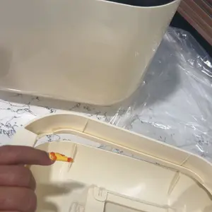 The kitchen compost bin is easy to assemble. Hang it on a cabinet door with the provided hook. For wall mounting, use the adhesive pad. This flexible setup allows you to place it under sinks, in cupboards, or on walls. The bin's design ensures convenience and adaptability for various spaces.