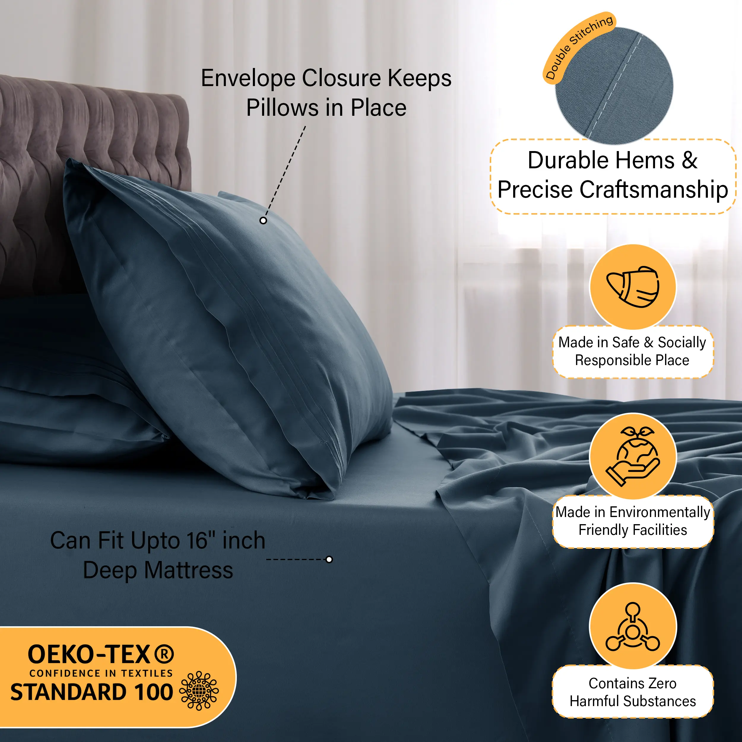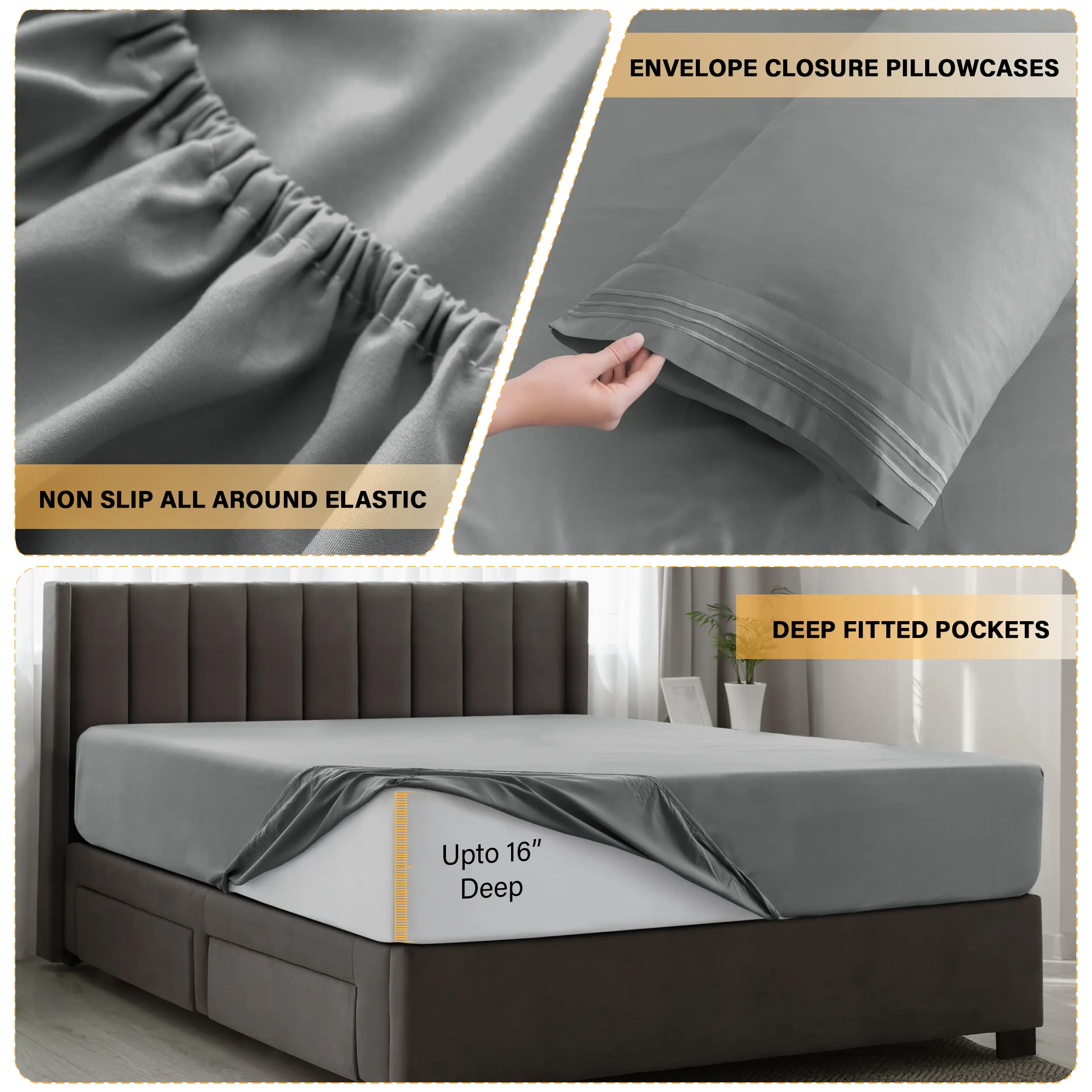 ·Perfect Fit: 16" deep pocket with all-around elastic ensures a snug fit.