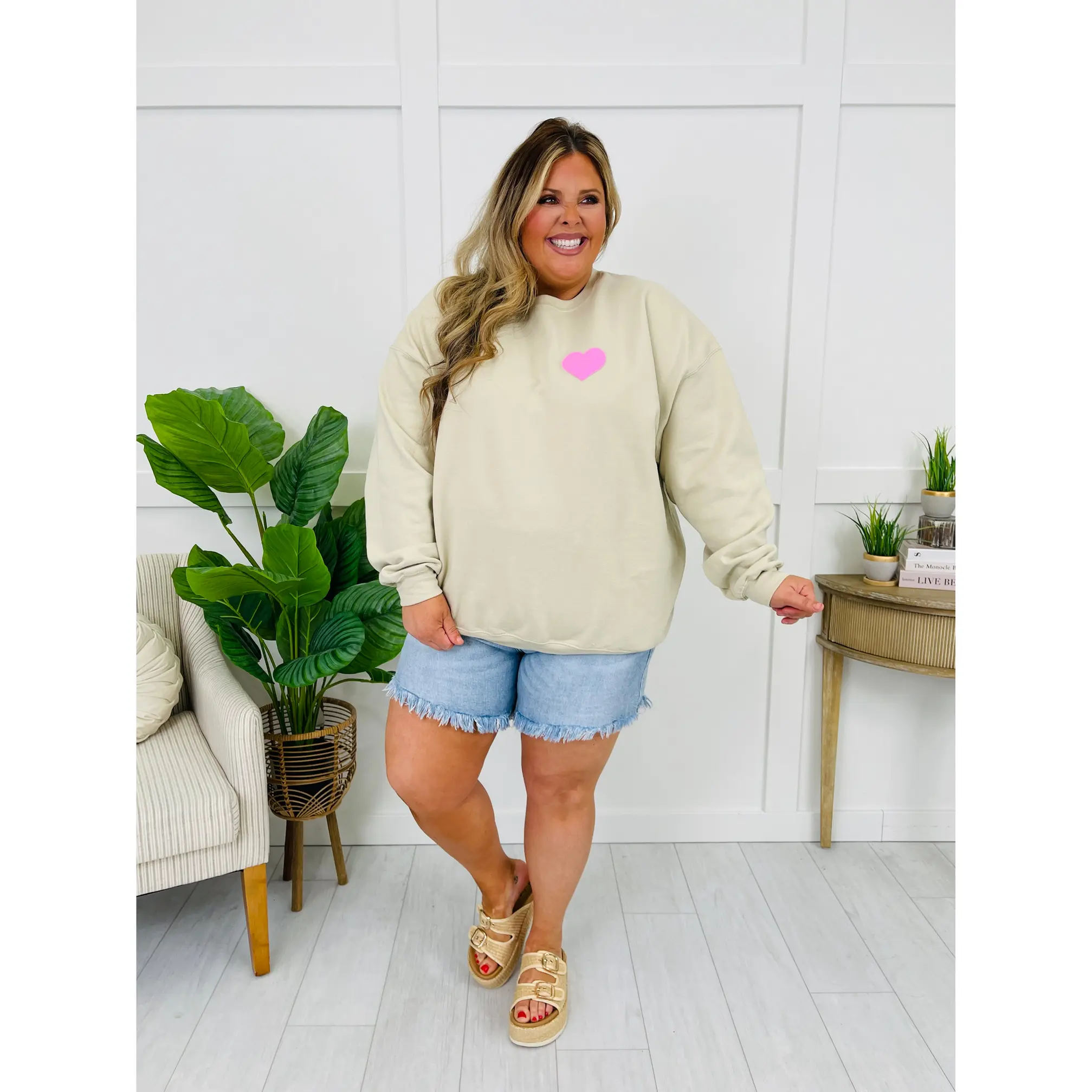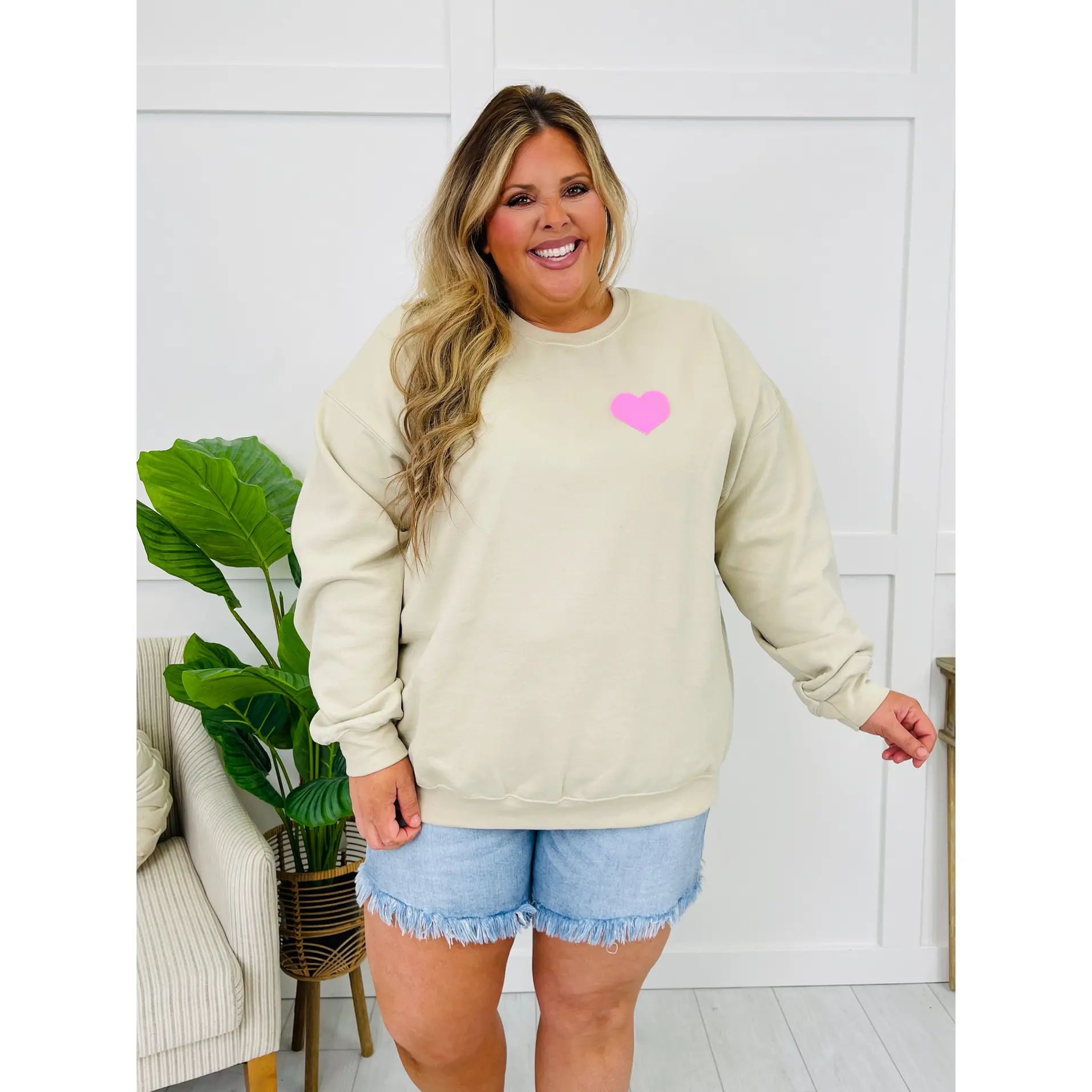 Model: Kamri (long, dark blonde hair) is 5’3” and a true size Small, sized up to a Medium for an oversized fit. Mackenzie (long, light blonde hair) is 5’5” and wearing her true size of 3XL.