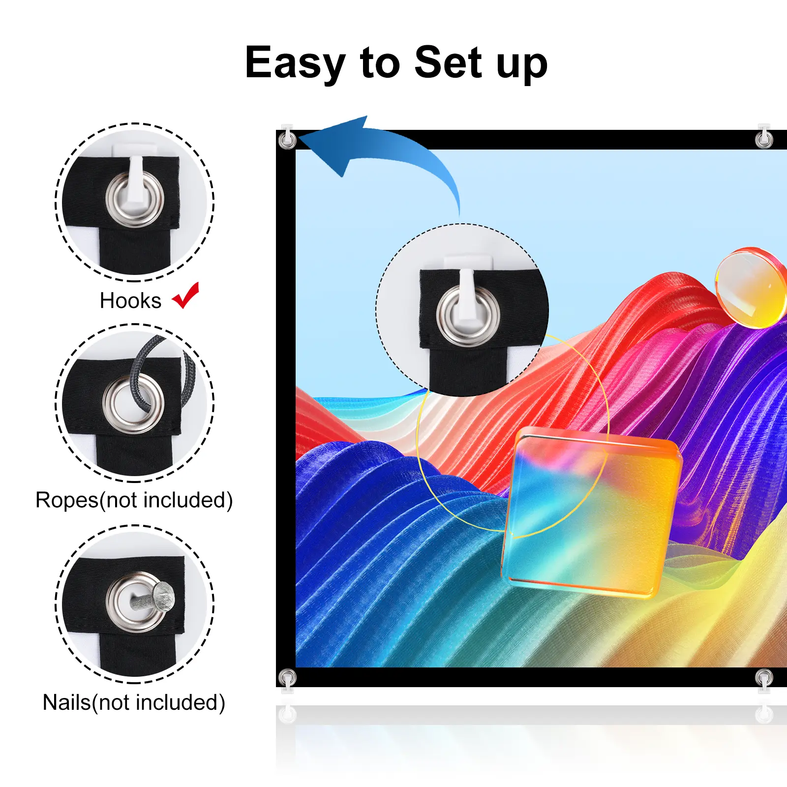 Lightweight and fully foldable, this screen fits easily into any backpack or suitcase without damage. With all installation tools included, one person can mount it in just 1 minute—perfect for fast indoor or outdoor setup.
