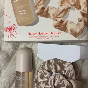The hair perfume is amazing and it last all day! It smells so good like sweets. My only complaint is my bottle did not come full of perfume. There was a lot of free space. And the scrunchies from this set are very cheaply made. Kitsch does have better scrunchies so i didn’t expect that from this set