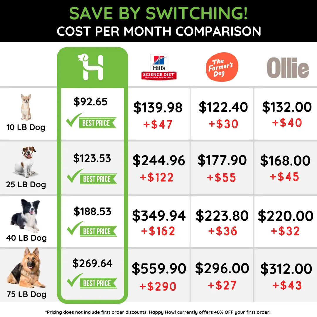 All Happy Howl food exceeds AAFCO standards for complete and balanced full meal plans for all life stages; including puppies, adult, elderly dogs, and dogs over 140 lbs.
