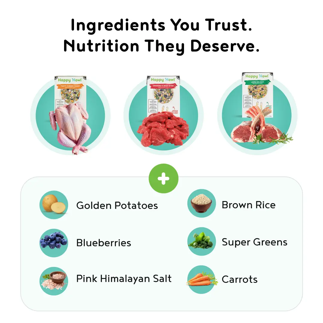 HappyHowl Dog Food is cooked in small batches in a USDA-grade kitchen and goes through a strict testing process from a certified third-party for quality assurance before it ever leaves our facility.