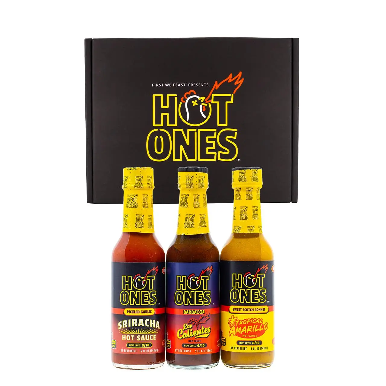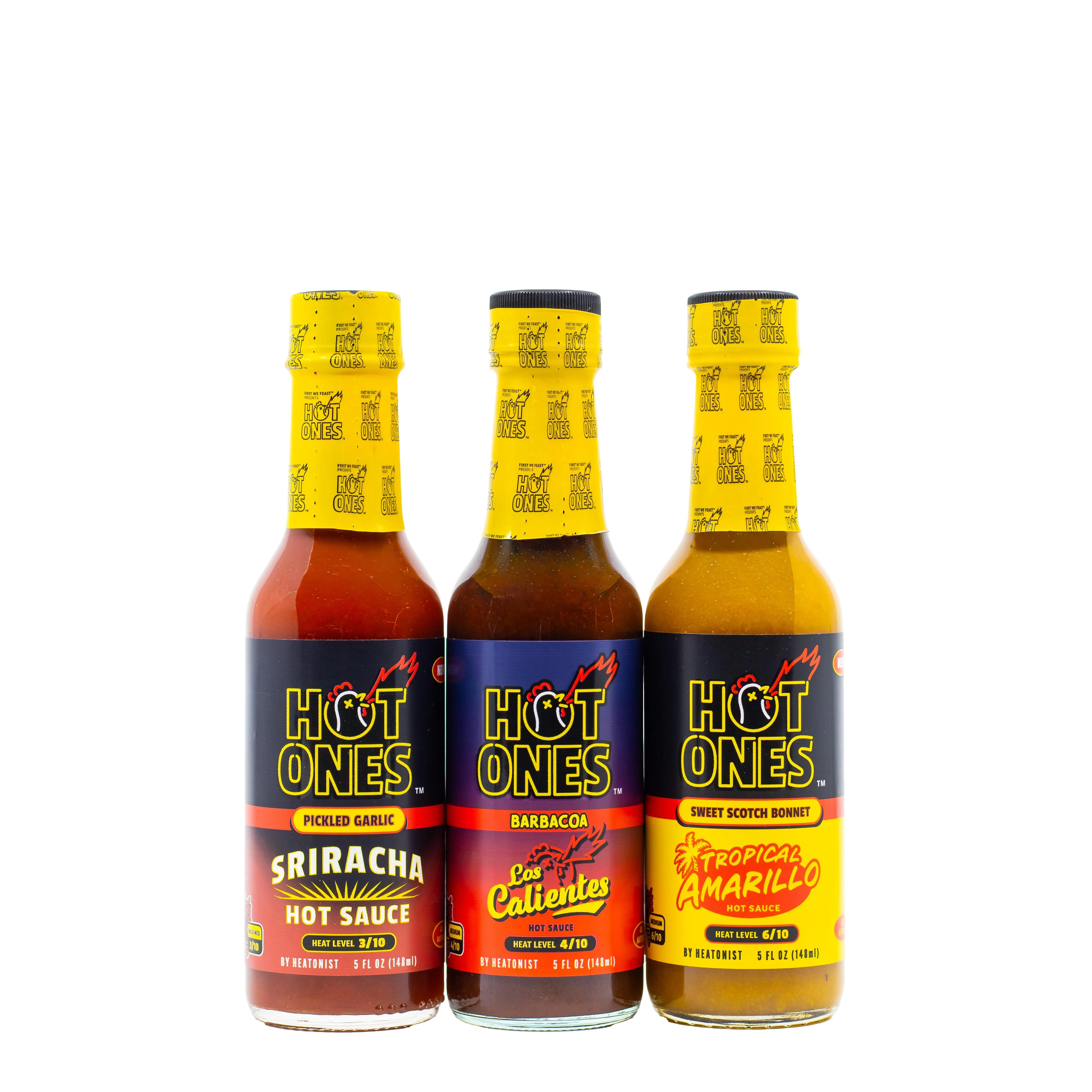 TIKTOK EXCLUSIVE: Experience the sweet spot of the lineup with this Hot Ones hot sauce trio! We've handpicked three medium-heat, fan-favorite sauces that nail the heat-to-flavor ratio, blending bold pepper varieties with just enough sweetness to keep things interesting. Whether you're chasing a gentle kick or moderate burn, this collection serves up the variety you crave without going full inferno. The ideal starter pack for heat lovers who appreciate finesse with their fire.