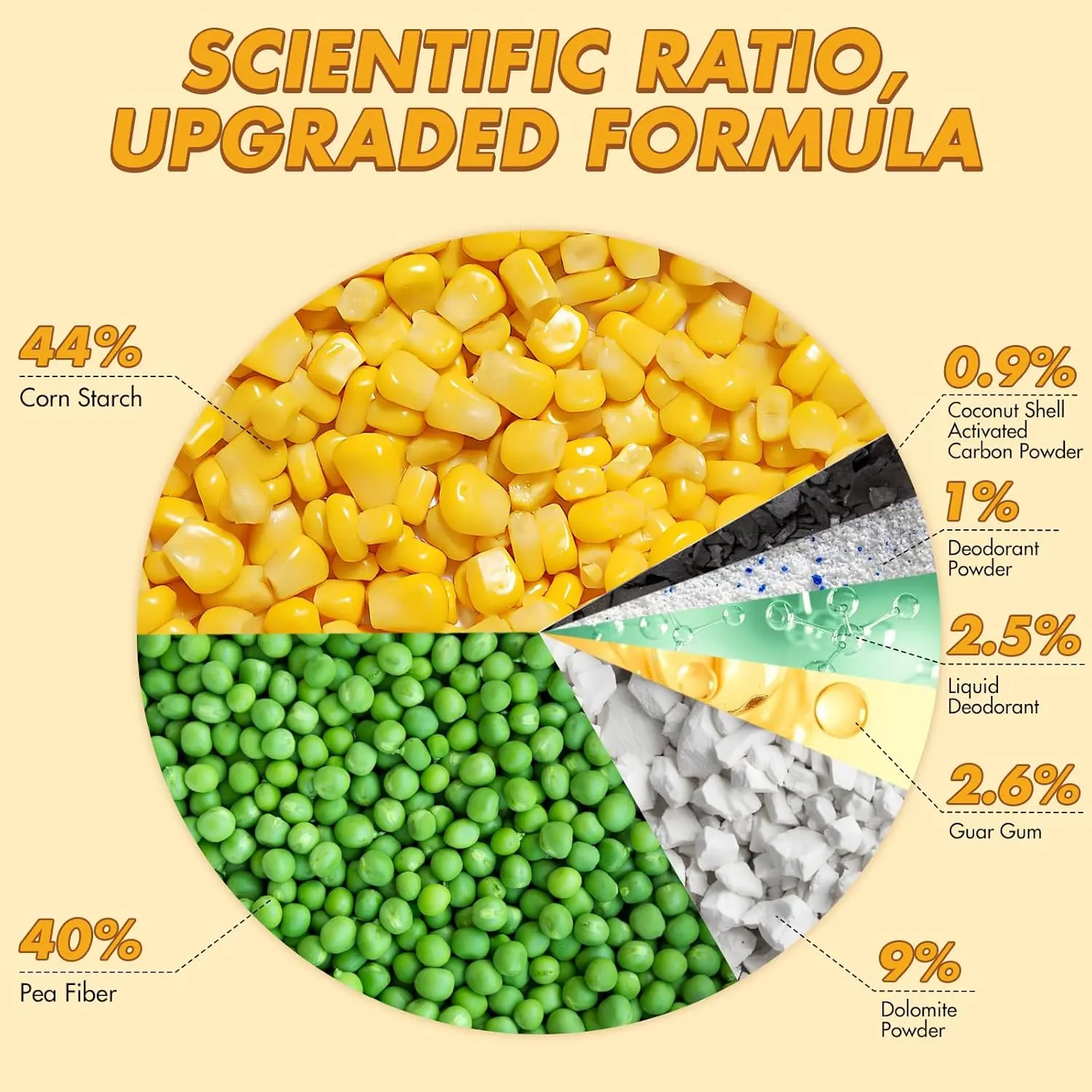 ·100% Natural Flushable Cat Litter:Made from pea dregs and corn starch, enhanced with coconut shell activated carbon. Provides quick clumping, strong odor control, less chance of sticking to a cat litter box, and safe eco-friendly use.