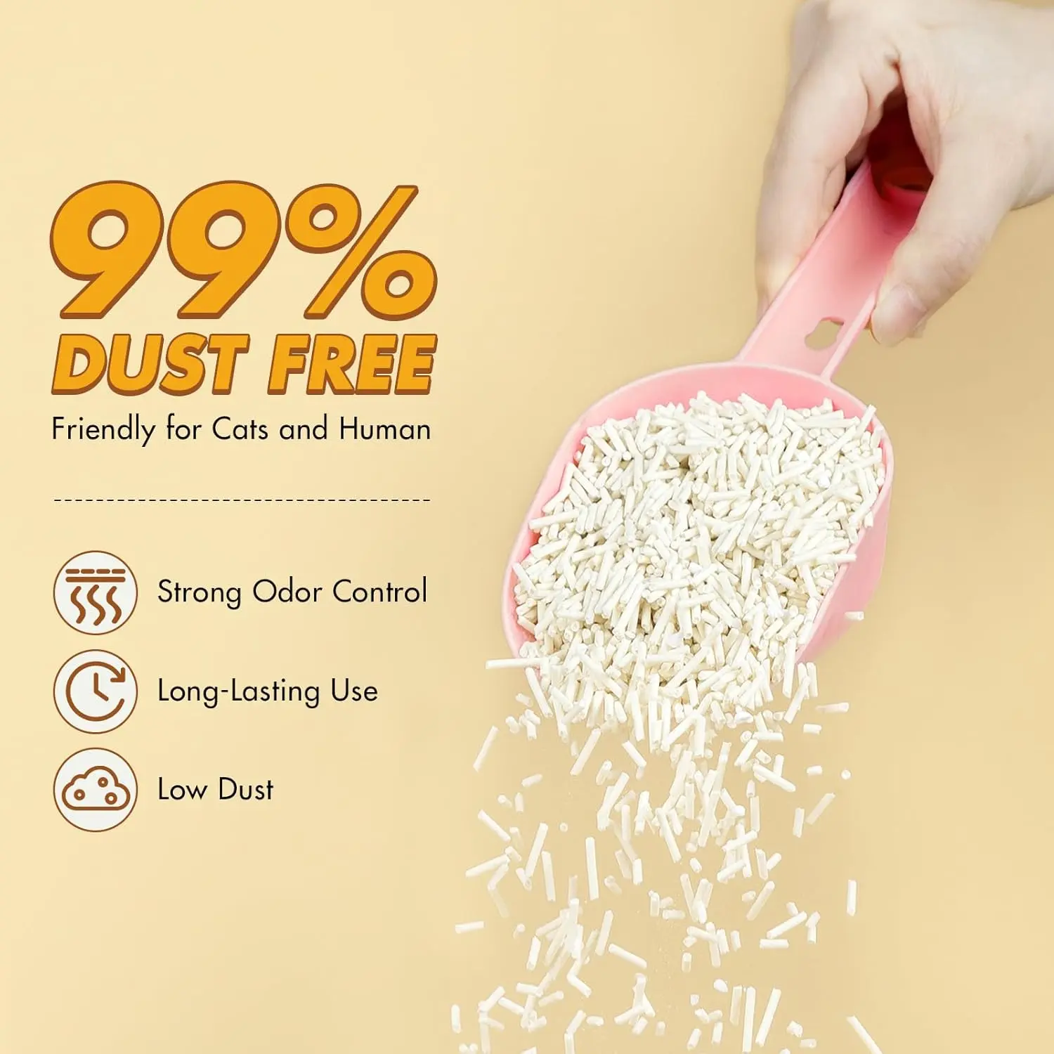 ·Low Dust & No Tracking Cat Litter:Our dust-free cat litter (99% dust removed) keeps air clean and reduces respiratory irritation. With a smooth texture, this non-tracking cat litter won’t stick to paws, minimizing mess and keeping floors fresh.