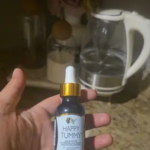 Happy tummy, me encanta mis niños y yo lo tomamos lo que mas me gusta esque no tengo que pelear con ellos para que se lo tomen,puesto que no tiene sabor los beneficios son muchos,me gusto que el gotero es de vidrio,lo seguiré comprando.gracias