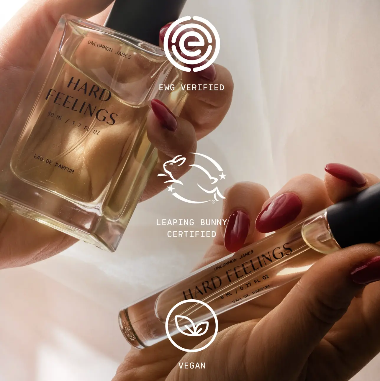 This scent lasts forever! I spray once on my neck and once on my wrist and I smell this fragrance all day long. I love the smell & I LOVE that it’s clean! The travel bottle is perfect for flying so I never have to go without my favorite perfume.