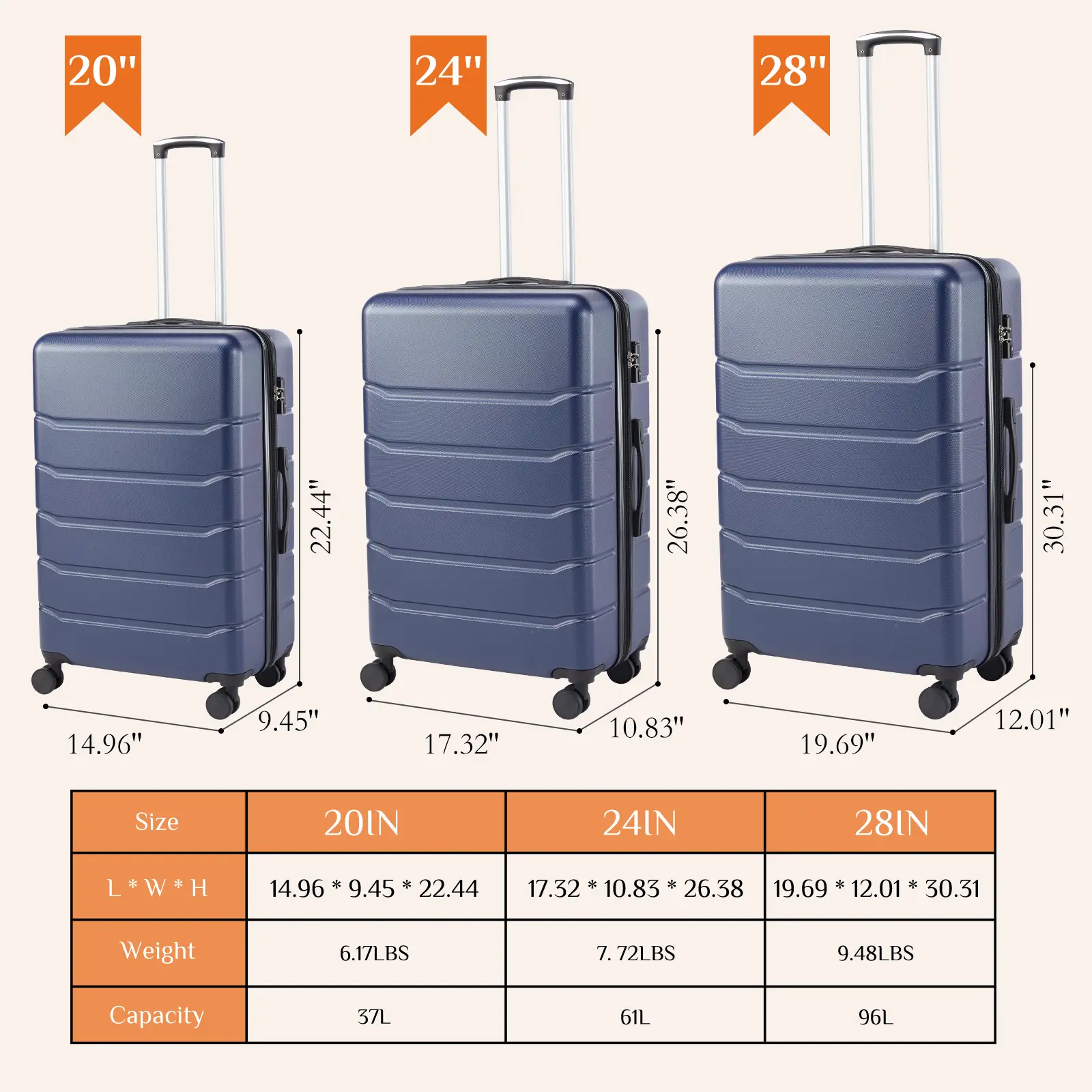 Blue, 20Inch+24Inch+28Inch