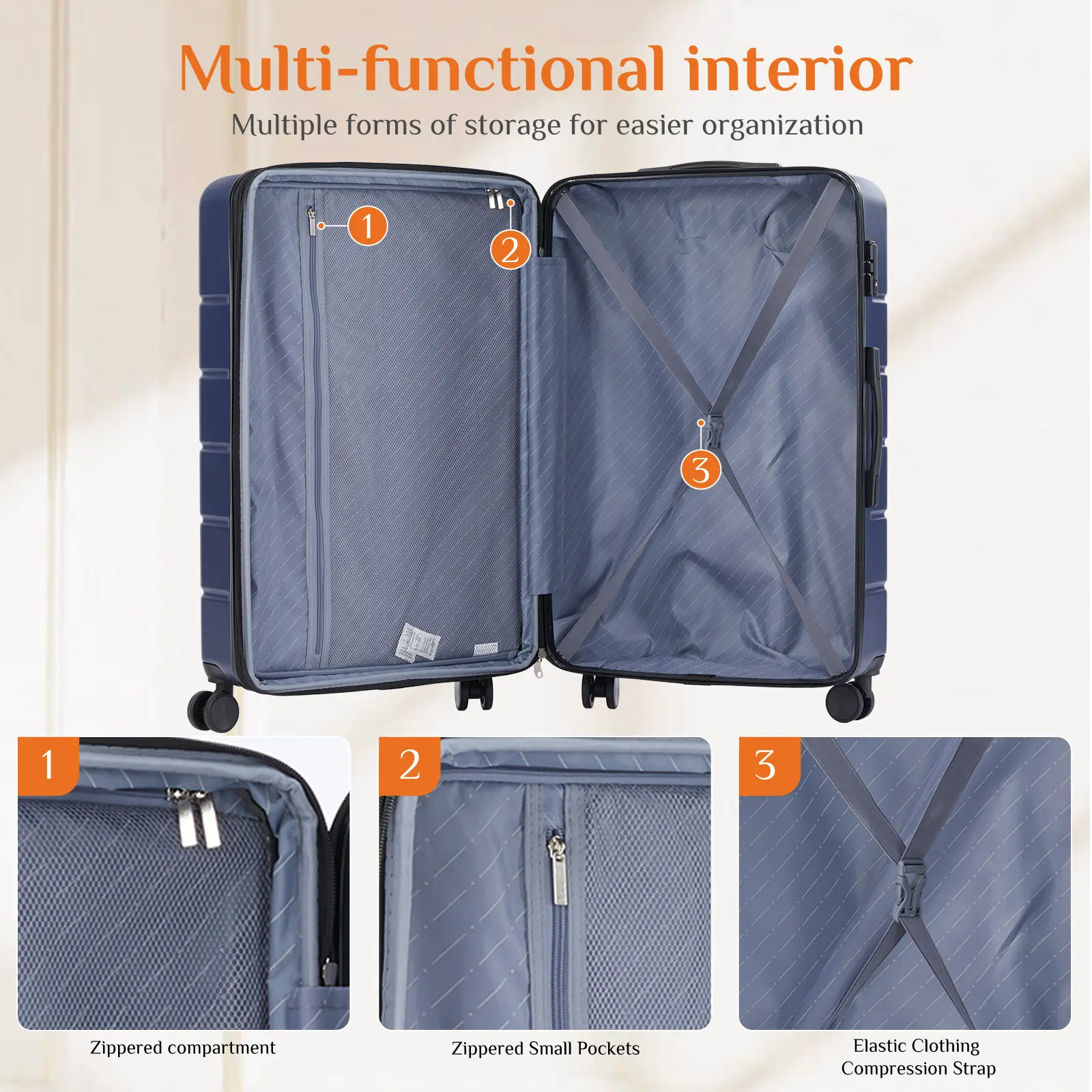 ·【Spacious Storage Space】With spacious and practical storage, wet and dry mesh areas, X securing straps and expandable storage capacity, this suitcases with wheels offers optimal organization and versatility, designed to meet all your travel needs. The premium zipper closure system gives you peace of mind and convenience when traveling.