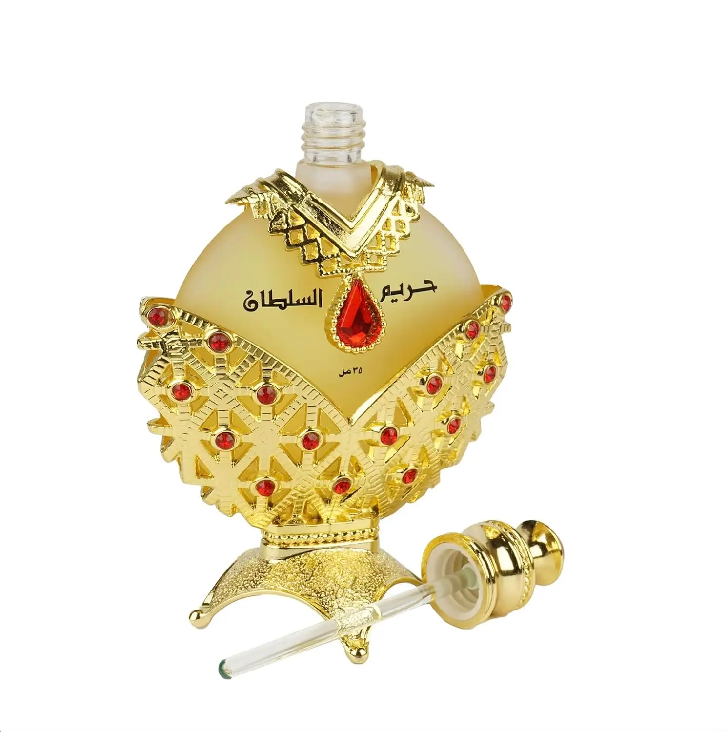 Grounded in the richness of Musk, Patchouli, and Sandalwood, the base notes of Hareem Al Sultaan Gold Perfume Oil anchor the fragrance with a sensual and earthy allure, leaving a lasting impression that lingers on the skin, enticing both the wearer and those around her.