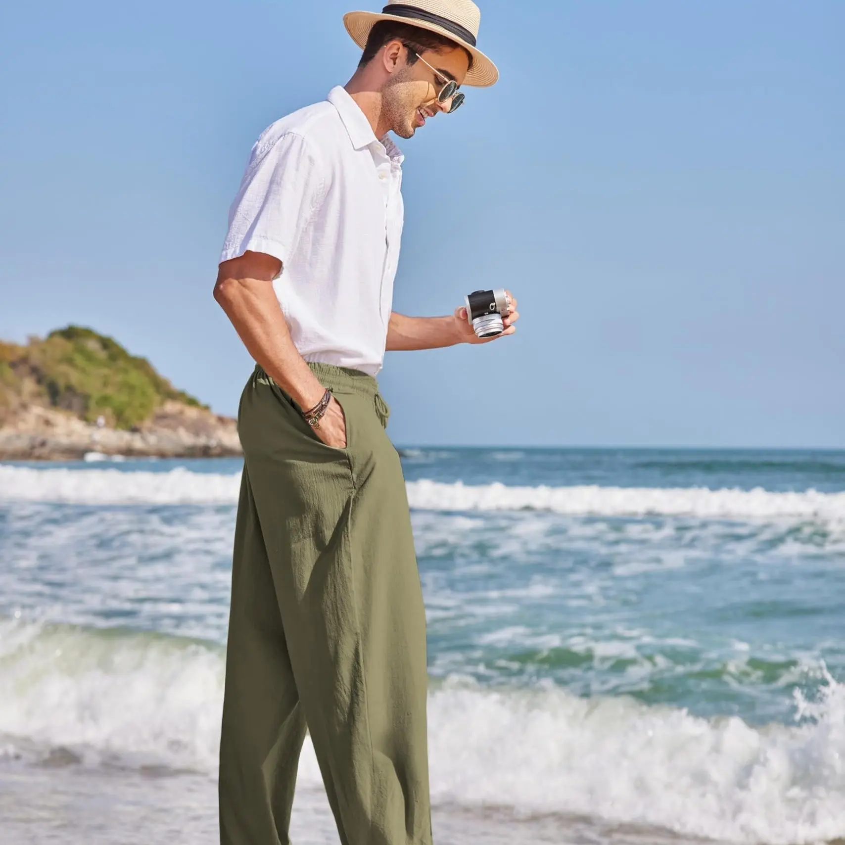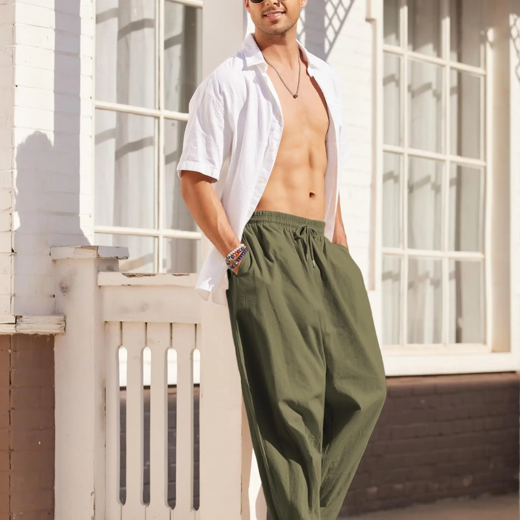 Β·EASY TO MATCH - Various colors for you to choose from. These cotton linen pants can be easily paired with a casual T-shirt and sneakers to create a casual look, or paired with a beach shirt and sandals for a vacation style.