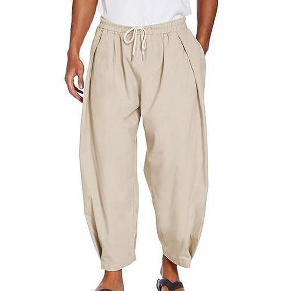 ·【OUTFIT PAIRING】: Usually paired men's linen harem pants with linen shirts, t shirts, hippie shirts, sandals, canvas shoes, flip flops and etc for everyday casual wear, suit for all season.
