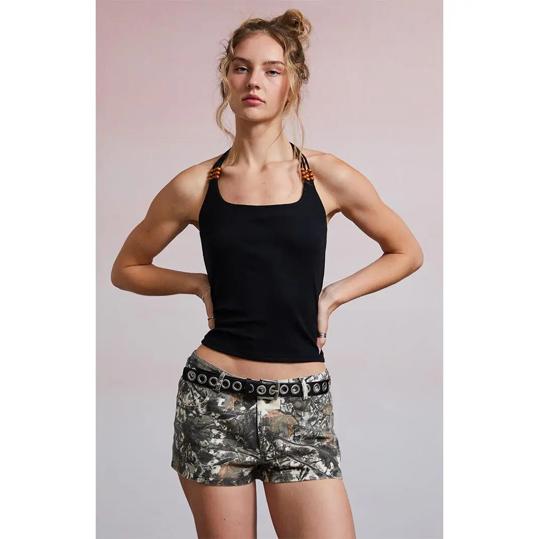 Make a statement in the Third Charm Harlow Beaded Halter Tank Top—where boho meets standout. This slim-fit tank features a square neckline, open back design, and an adjustable halter strap with beaded details that bring the perfect pop of flair.