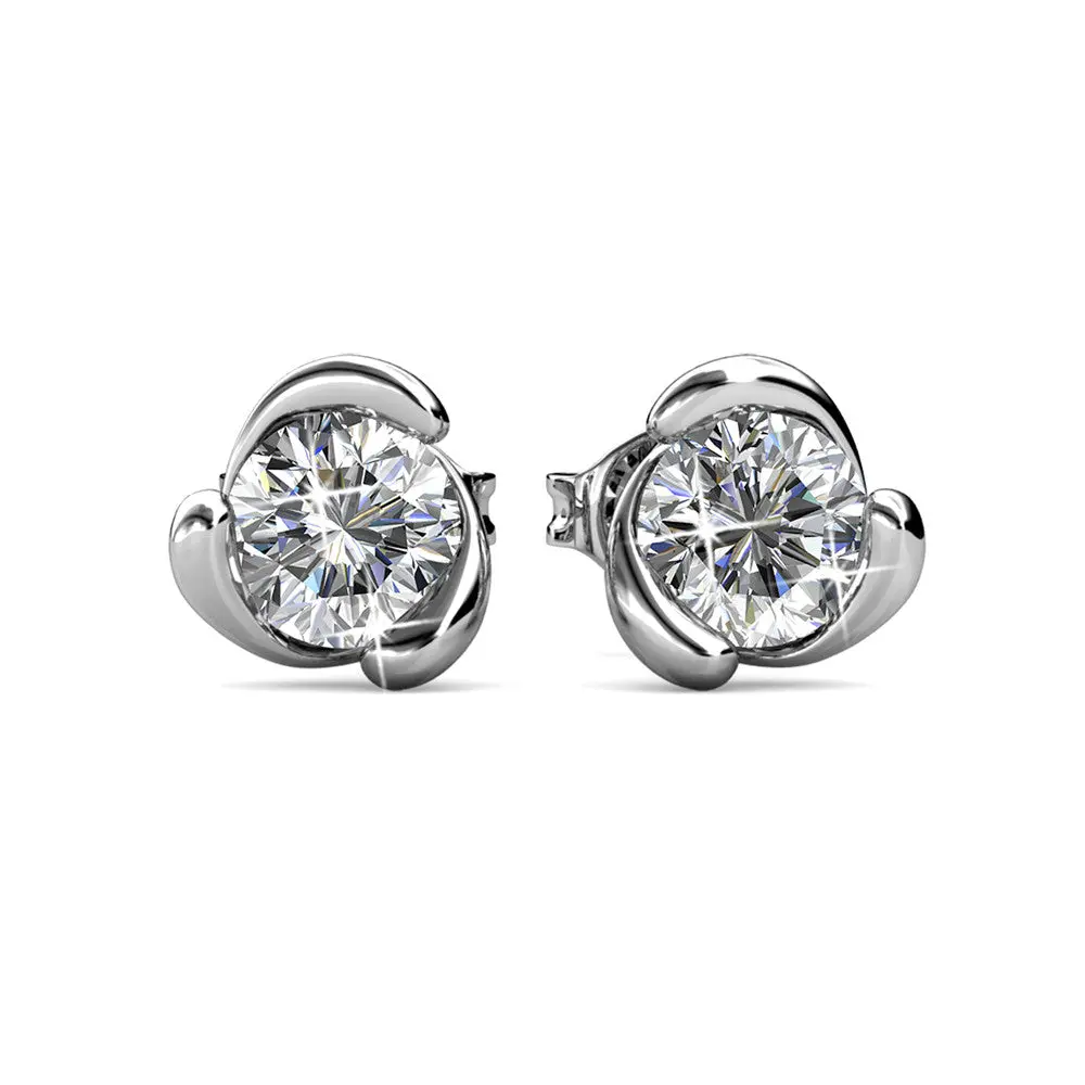 Harmony 18k White Gold Plated Stud Earrings with Round Simulated Diamond Crystals