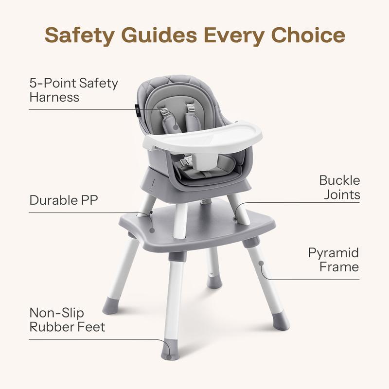 8-in-1 Versatility: One chair. Eight real-life solutions. From a traditional baby highchair, feeding chair, toddler booster, and toddler chair, to a dining chair, building block table, studying table, kids stool, and table & chair set. Recommended age: 6–36 months(up tp 55 lbs)