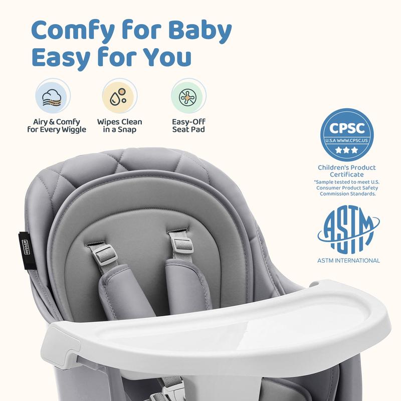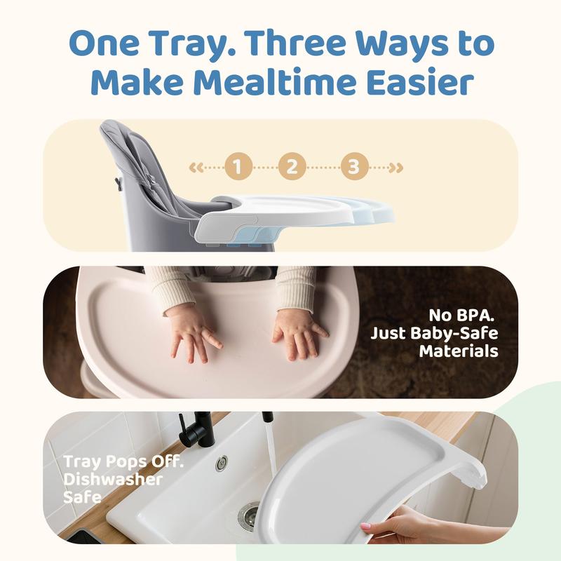 Easy Cleaning: The tray is made from kids-friendly and dishwasher-safe PP material and the PU seat cushion can be cleaned in just a wipe.