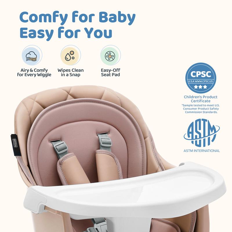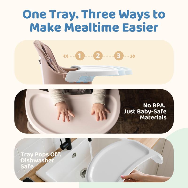 Easy Cleaning: The tray is made from kids-friendly and dishwasher-safe PP material and the PU seat cushion can be cleaned in just a wipe.