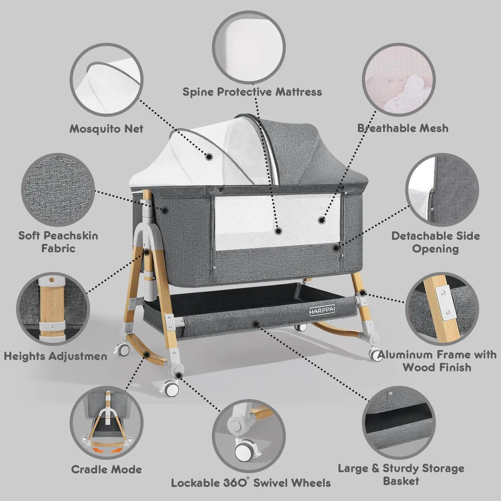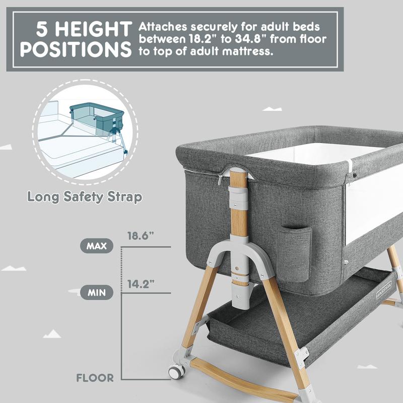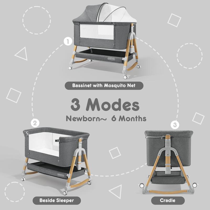 3 in 1 Convertible Bassinet: Can be used as a bedside bassinet, rocking bassinet or standalone baby bassinet.