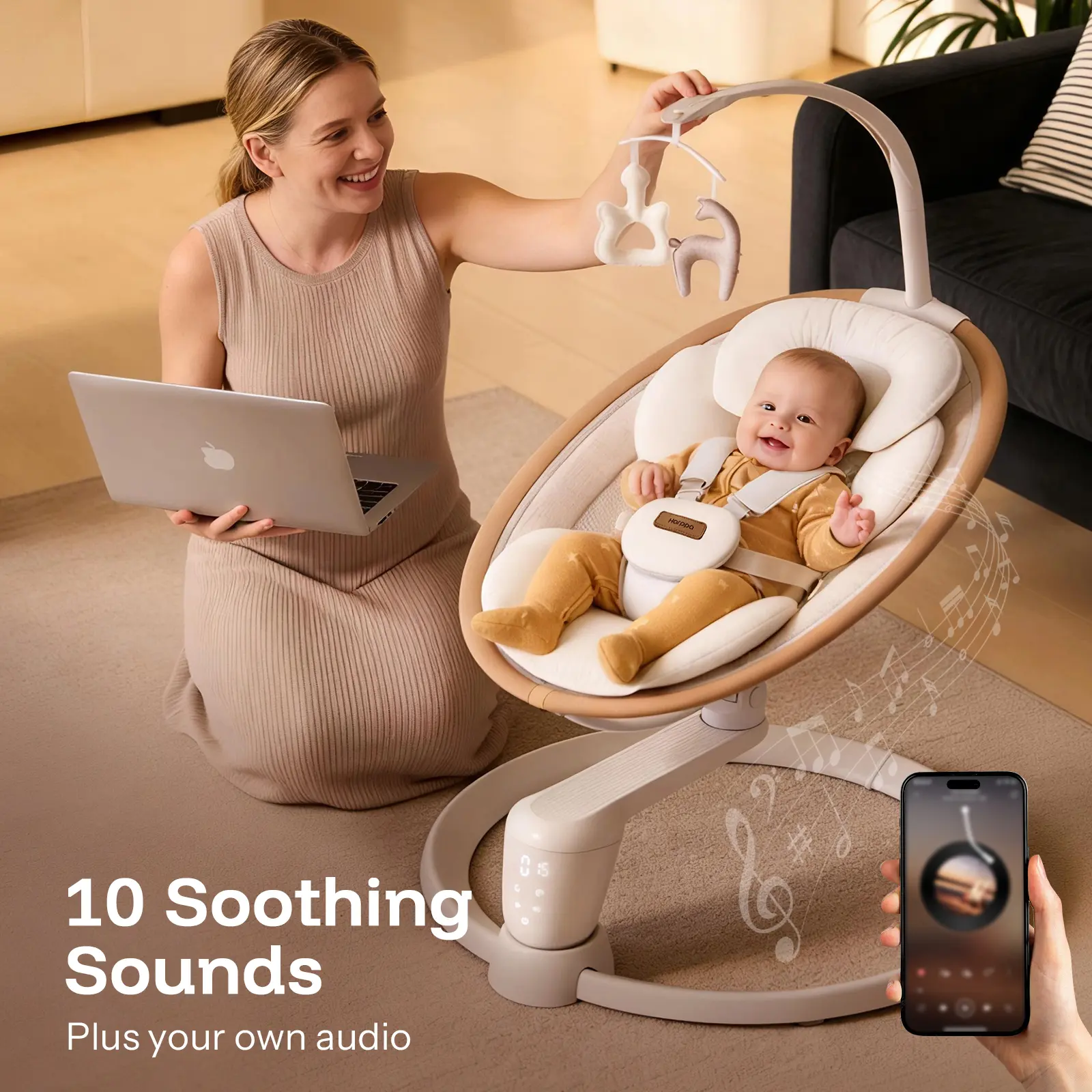 Early Development Through Play: With 10 built-in natural melodies and mobile connectivity for personal music, you can create a soothing or engaging environment. Gentle sounds and rhythmic motion help stimulate sensory and motor development.