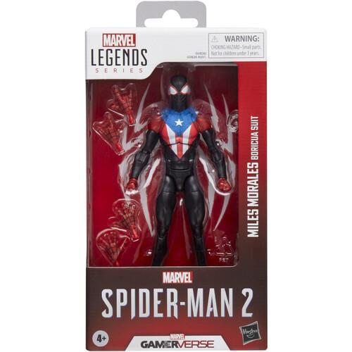 Description:Bring the excitement and wonder of the Marvel Universe to your collection with Hasbro Marvel Legends Boricua Suit Miles Morales action figurine/statue!This collectible 6-inch scale Marvel figurine/statue is detailed to look like the character's appearance in Marvel's Gamerverse Spider-Man 2 video game. Miles Morales Spider-Man figurine/statue is fully articulated with premium design and poseable head, arms, and legs. Marvel action figurine/statue set comes with 5 accessories, including a set of alternate web-slinging hands and web accessory for dynamic poses.Hasbro Marvel action figures' 6 inch scale make them great for displaying in fans' collections. Reimagine gaming-inspired scenes on your shelf with Marvel Legends action figures and Marvel collectibles.Features:GAMERVERSE-INSPIRED SPIDER-MAN: Collectible figurine/statue is inspired by Miles Morales's appearance in Marvel's Spider-Man 2 video game, featuring his Boricua SuitPREMIUM DESIGN AND DECO: Fans and collectors can display this premium figurine/statue with game-inspired design and deco in their collectionGAMING-INSPIRED ACCESSORIES: Officially licensed Hasbro Marvel Legends set comes with 5 accessories, including alternate hands6-INCH SCALE ACTION figurine/statue: Featuring a window box package, fans and collectors can display this premium figurine/statue designed at the Marvel 6 inch action figurine/statue scale (15 cm)DISPLAY-WORTHY ARTICULATION: Collectible action figurine/statue features over 20 points of articulation with fully poseable head, arms, and legsBUILD OUT YOUR GAMERVERSE COLLECTION: Add to your collection of Marvel Gamerverse -inspired Marvel Legends Series figures and Spider-Man action figures (Each sold separately. Subject to availability)MILES MORALES (BORICUA SUIT): Miles Morales fights to save New York from multiple threats, otherworldly and terrestrial. What sacrifices must be made to heal the world?Includes figurine/statue and 5 accessories.figurine/statue scale: 6 inches (15 cm)Ages 4 and upWARNING: CHOKING HAZARD – Small parts. Not for children under 3 years.Colors, packaging, accessories, and decorations may vary and are subject to change.