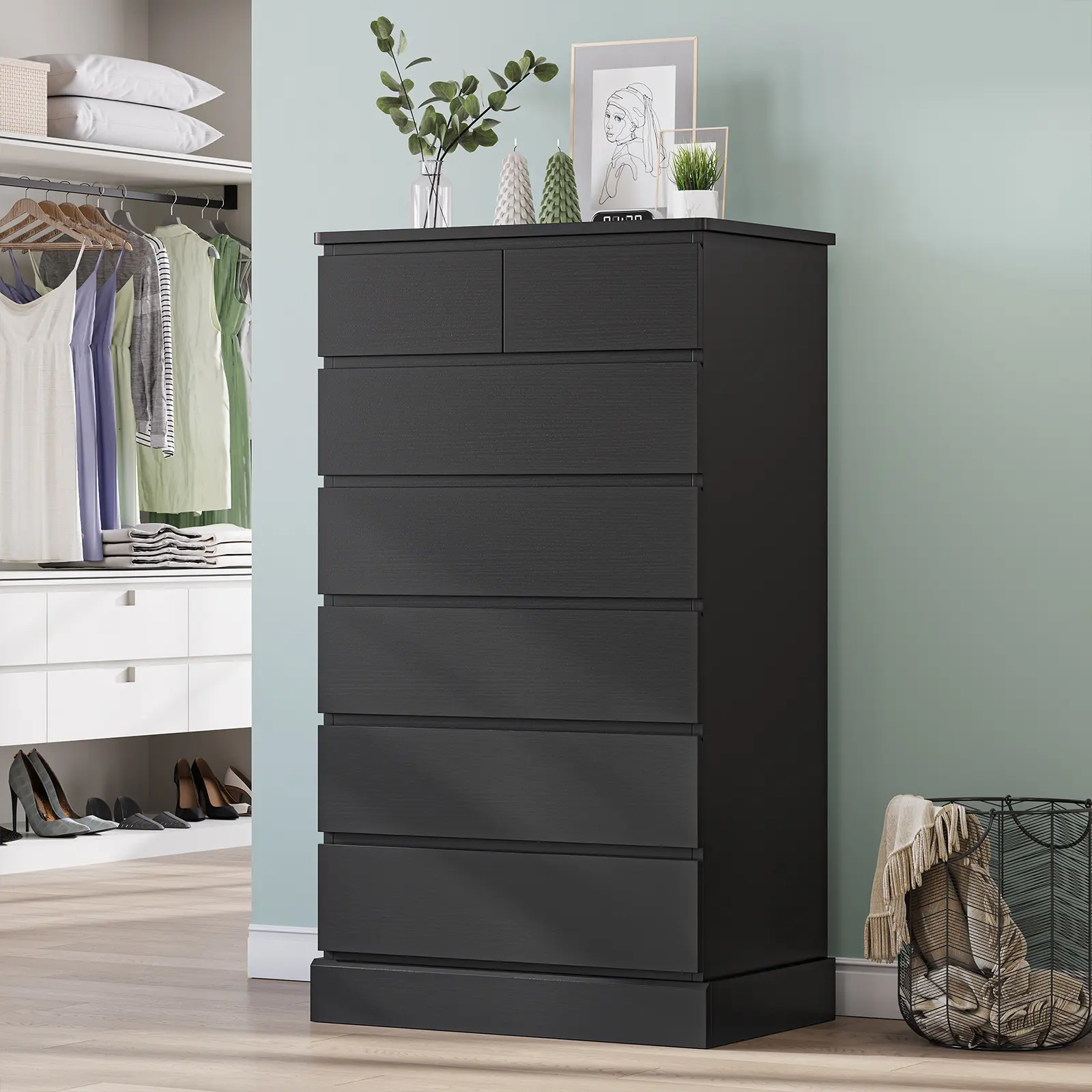 Este gavetero alto de 7 cajones Hasuit lo cambia TODO. Cabe ropa, sábanas y accesorios sin ocupar espacio. Diseño moderno, elegante y súper práctico #HomeOrganization #BedroomStorage #TallDresser #ChestOfDrawers #ModernFurniture
