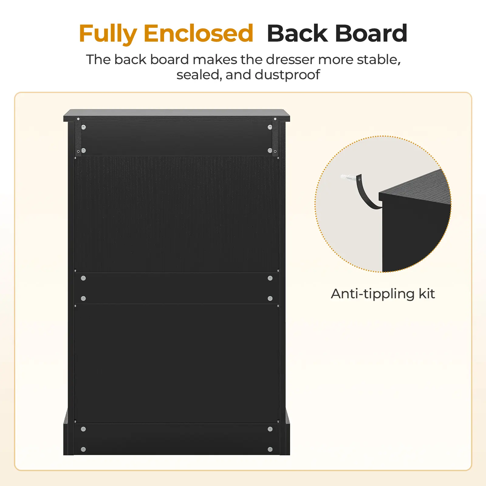 • Modern Design: Hidden drawer knobs and clean lines create a sleek, elegant look. • Ample Storage: 6 drawers; overall 26.0"W × 16.4"D × 40.0"H. • Durable Build: FSC-certified engineered wood, sturdy wide base for stability. • Safe & Stable: Wall anchors and enclosed backboard prevent tipping and dust. • Easy Assembly: Numbered parts, detailed instructions, and responsive after-sales support.