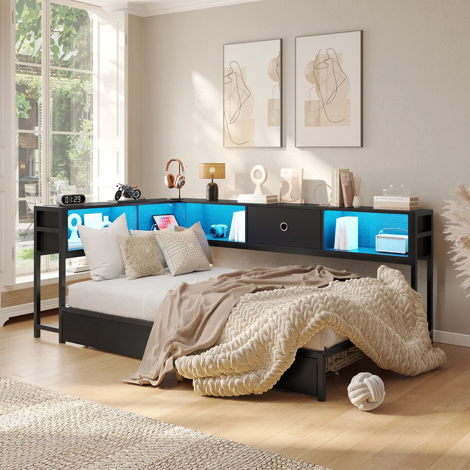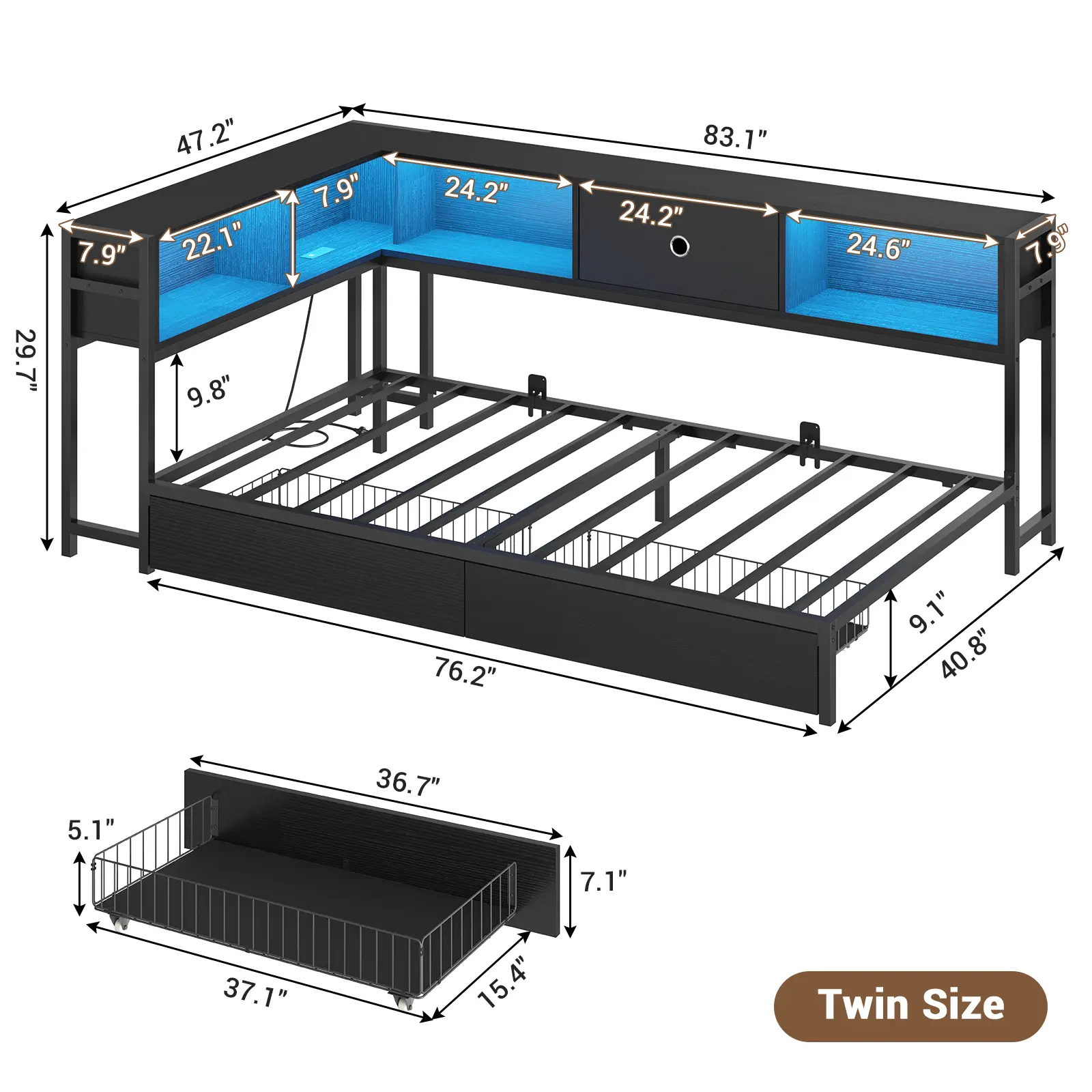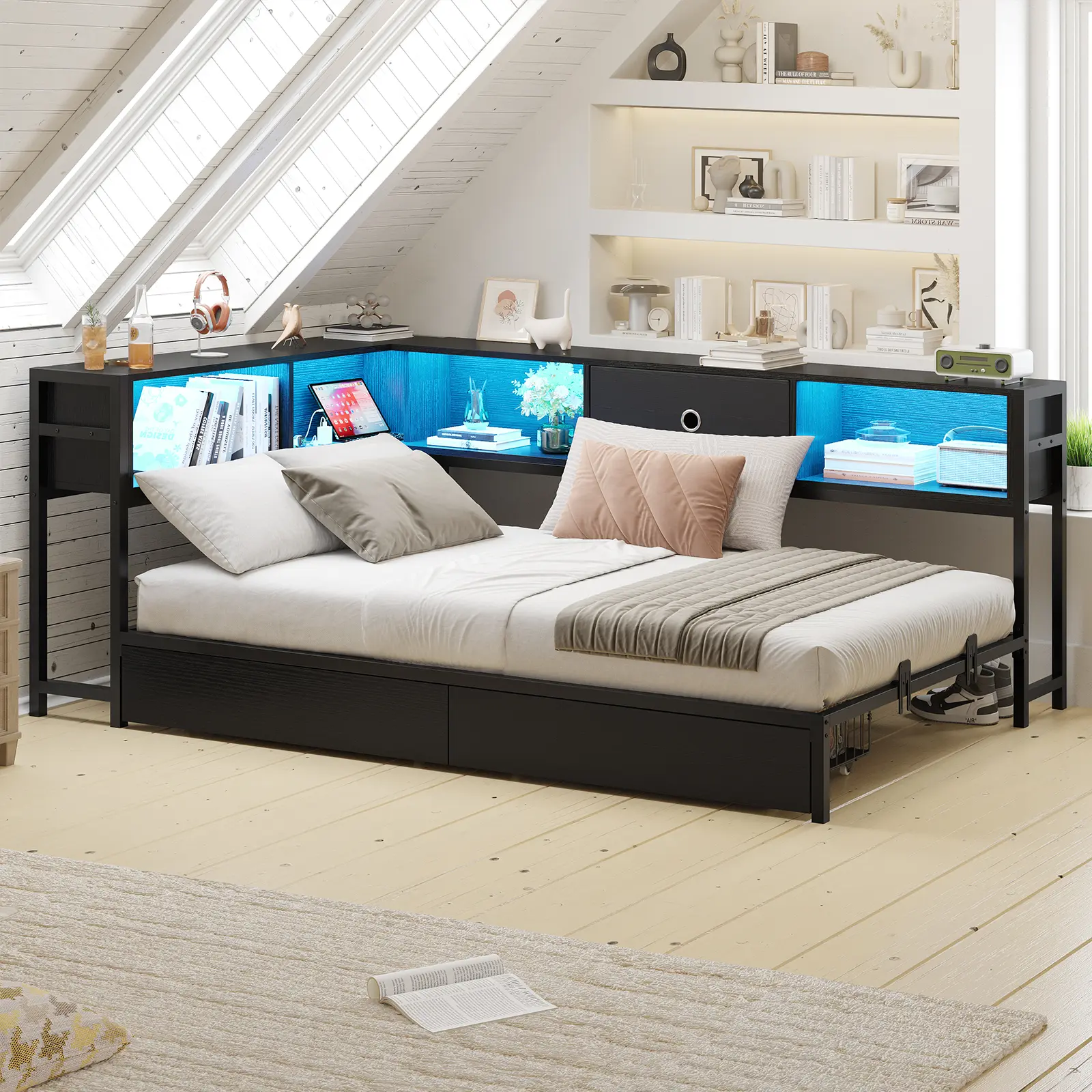Hasuit Twin Corner Bed Frame with Storage Drawers and Bookcase Headboard, Twin Size Metal Platform Corner Bed Frame with Charging Station and LED Lights, Twin Daybed for Kids Teens GuestsHasuit Twin Corner Bed Frame with Storage Drawers and Bookcase Headboard, Twin Size Metal Platform Corner Bed Frame with Charging Station and LED Lights, Twin Daybed for Kids Teens GuestsHasuit Twin Corner Bed Frame with Storage Drawers and Bookcase Headboard, Twin Size Metal Platform Corner Bed Frame with Charging Station and LED Lights, Twin Daybed for Kids Teens GuestsHasuit Twin Corner Bed Frame with Storage Drawers and Bookcase Headboard, Twin Size Metal Platform Corner Bed Frame with Charging Station and LED Lights, Twin Daybed for Kids Teens GuestsHasuit Twin Corner Bed Frame with Storage Drawers and Bookcase Headboard, Twin Size Metal Platform Corner Bed Frame with Charging Station and LED Lights, Twin Daybed for Kids Teens GuestsHasuit Twin Corner Bed Frame with Storage Drawers and Bookcase Headboard, Twin Size Metal Platform Corner Bed Frame with Charging Station and LED Lights, Twin Daybed for Kids Teens GuestsHasuit Twin Corner Bed Frame with Storage Drawers and Bookcase Headboard, Twin Size Metal Platform Corner Bed Frame with Charging Station and LED Lights, Twin Daybed for Kids Teens Guests