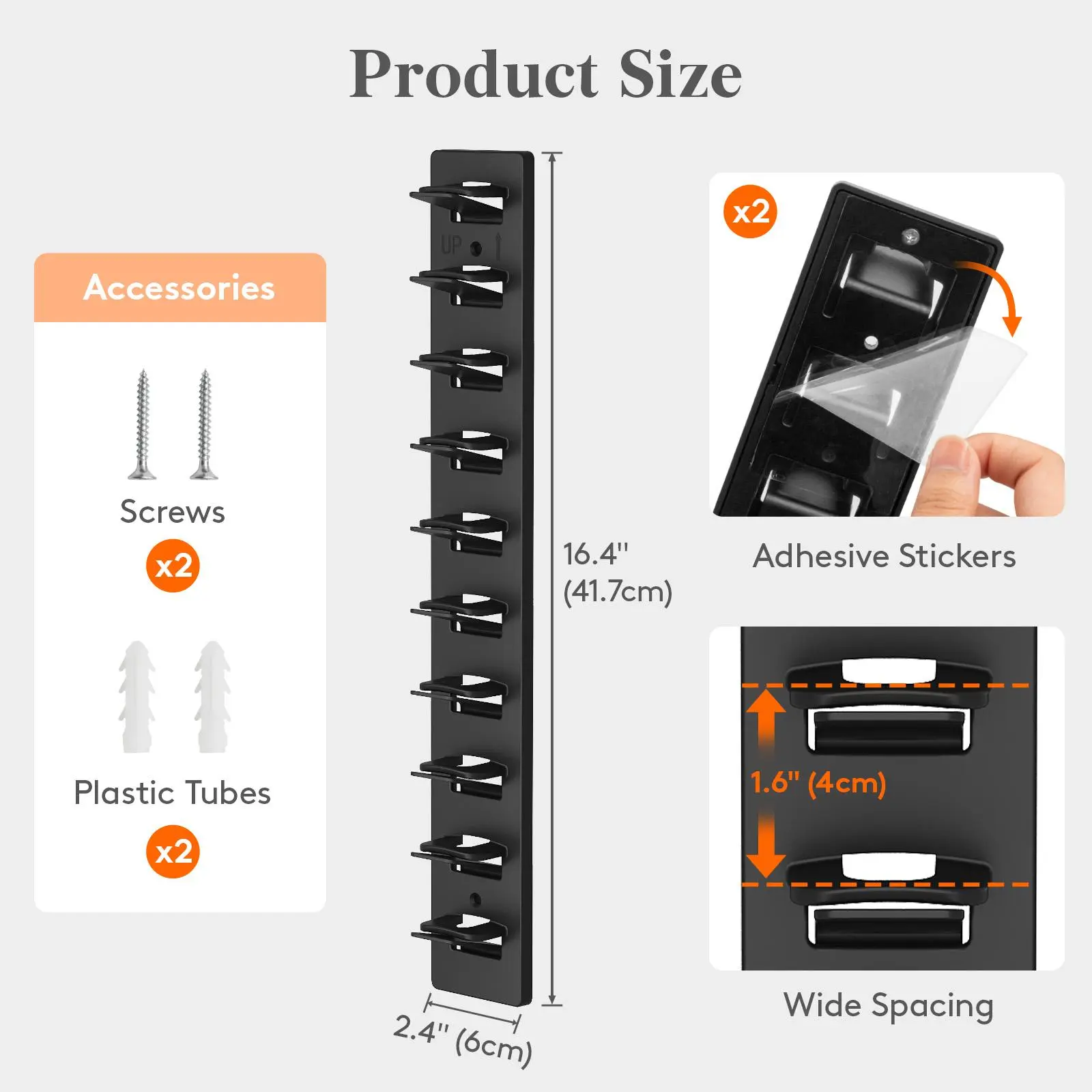 Installation: Two options β adhesive for smooth surfaces (closets, doors, cabinets) or screws for rough surfaces (painted/cement walls)