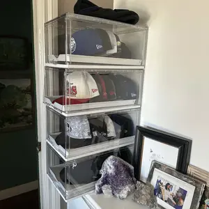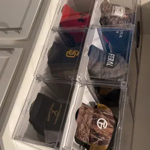 Elevate your cap collection with the Vtopmart Hat Organizer! This sleek, modern box keeps your caps organized and easily accessible. Crafted from durable, transparent material, it protects your caps from dust and damage. The clear design ensures instant visibility, so you'll never lose track of your favorite cap.