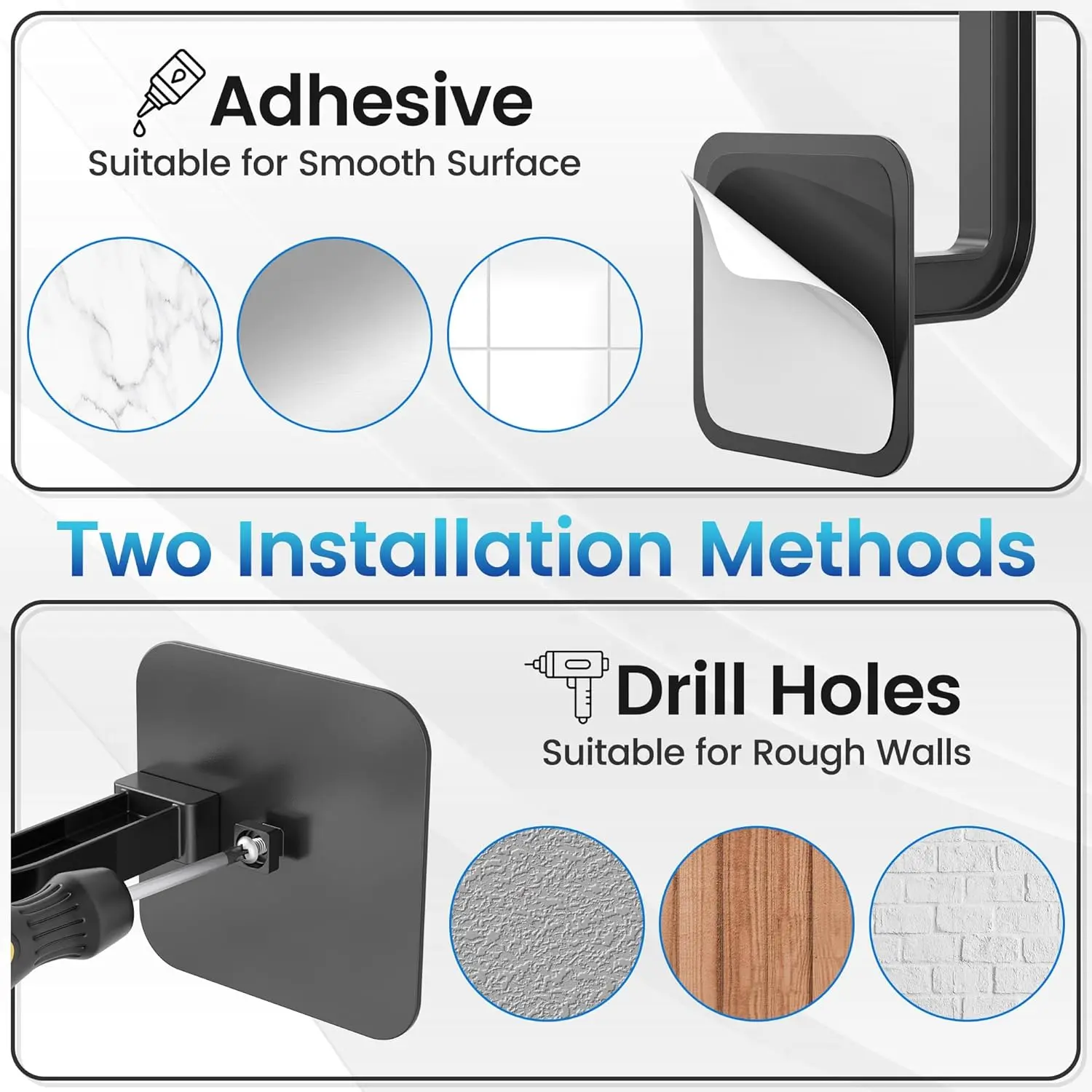Effortless & Secure Installation: Choose between 2 easy installation methods—self-adhesive for a quick, no-drill setup, or screw mounting for a more permanent solution.
