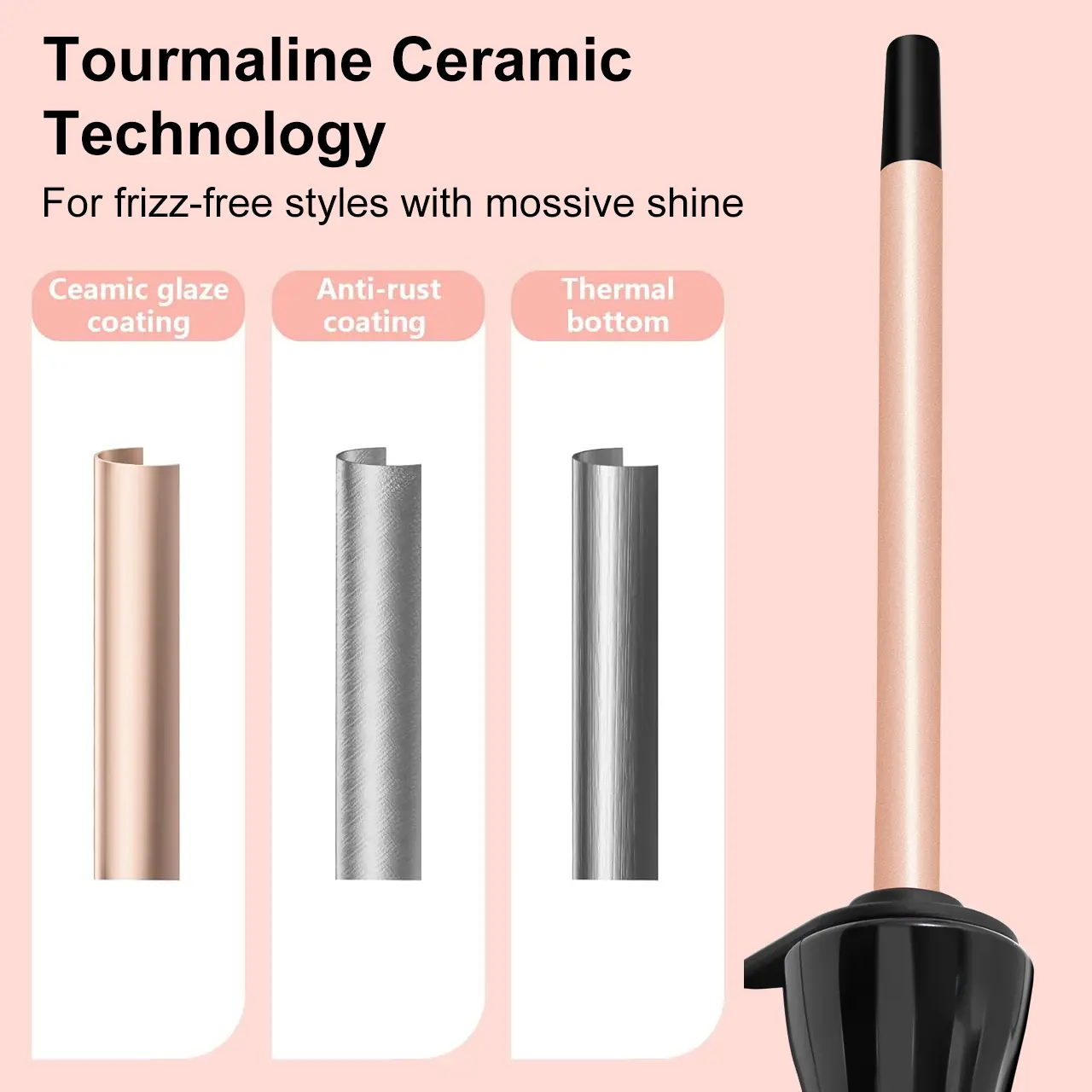 【30 S Instant Heating UP】The curling wand have rapidly heating system, you can swiftly adjust to your desired temperature and enjoy rapid heating in just 30s,The 2.5-meter long, 360-degree swivel cord provides tangle-free flexibility for effortless styling. Wrap your hair around the barrel according to your hair type and hold for 5-8 seconds to achieve lasting wave curls style.
