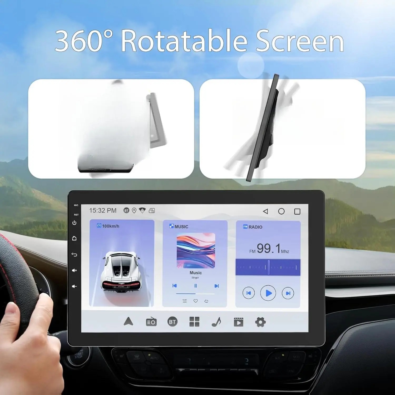 ·10.1-inch IPS Display: Featuring a responsive 10.1-inch IPS display with 1280×720 resolution, this single-DIN car stereo offers a rotatable screen. It can switch between portrait and landscape modes with a 360° rotation. Designed for easy installation and removal.