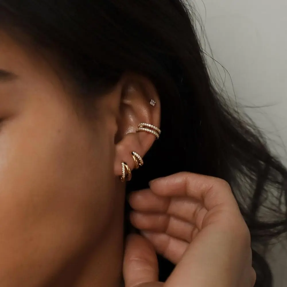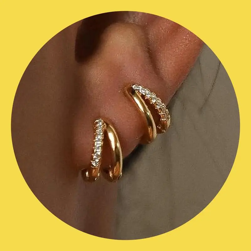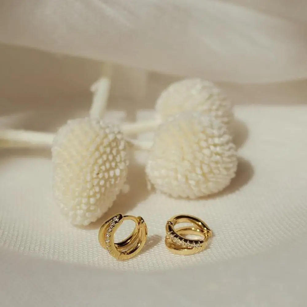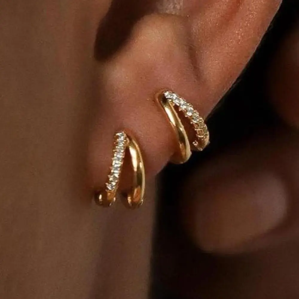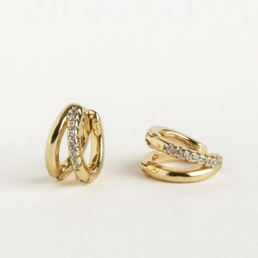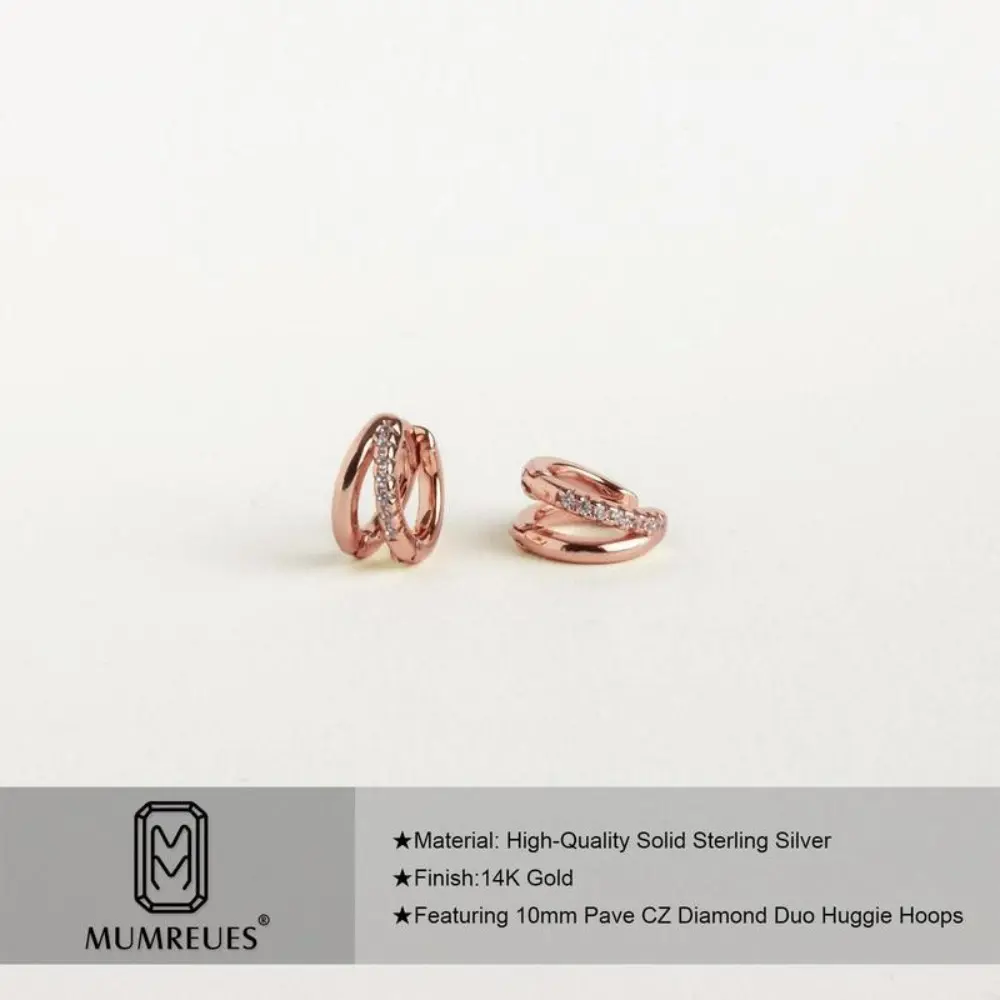 ✨ Elegant Design ✨ - 12mm CZ Diamond Duo Huggie Hoops: These earrings feature a stylish design that is both eye-catching and elegant. - Hypoallergenic: Crafted from hypoallergenic brass and 14K gold-plated, they are nickel-free, lead-free, and resistant to tarnishing.