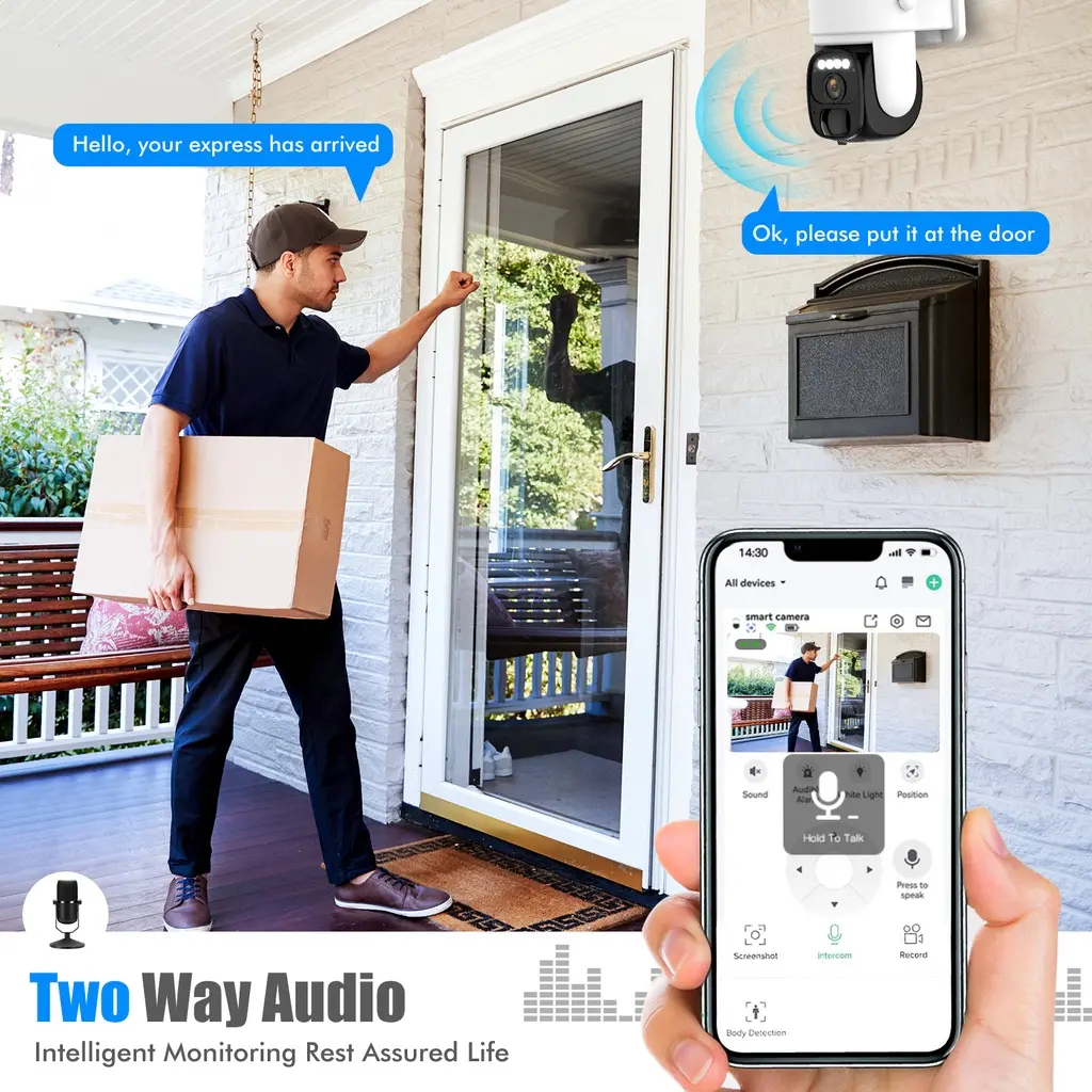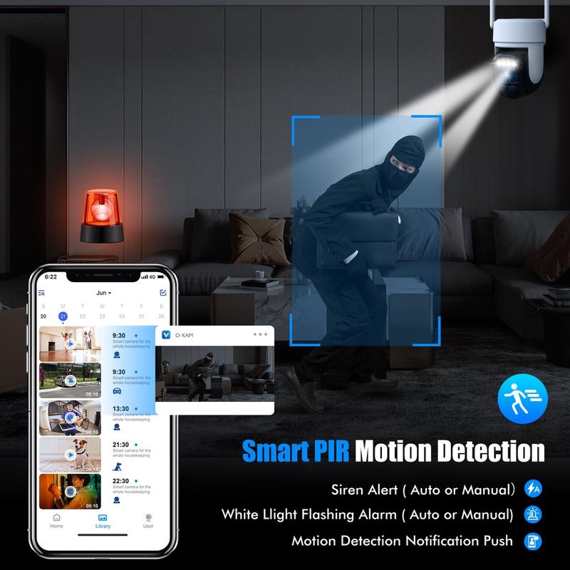 ·Two-Way Voice Call & IP66 Waterproof: Features a remote conversation with anyone in front of the camera through the camera's built-in microphone and speaker via the O-KAM App.