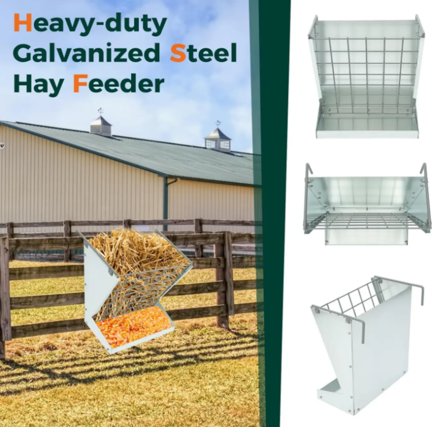 ·Reduce Food Waste: It adopts a 4x4 hay net design and there is a grain storage rack at the bottom to maximize the use of hay to prevent livestock from gobble too much food at the same time, reducing wastage and better protect livestock health.