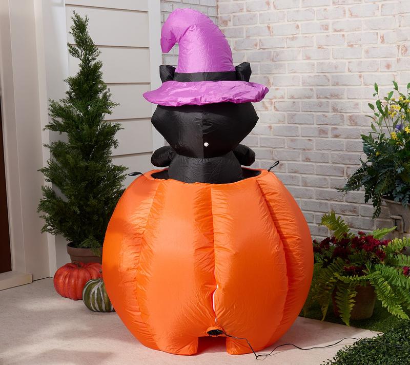 Add spooky charm to your yard with this 48ā€ inflatable Jack-O-Lantern featuring an adorable black cat in a witch hat. Easy to set up and perfect for Halloween dĆ©cor lovers, this glowing inflatable is a fun way to welcome trick-or-treaters and delight neighbors. #HalloweenInflatable #OutdoorHalloweenDecor #JackOLanternCat #HalloweenYardDecor #SpookySeason