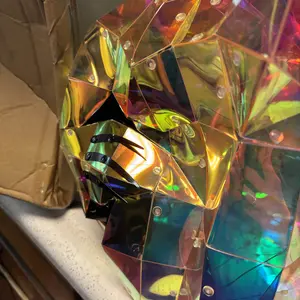 QVC Halloween holographic, pumpkin decor. It has a remote control it lights up and has spooky glam vibes. #halloweenvibes #spookyseason #spookyglam #limitedstock #holographicvibes