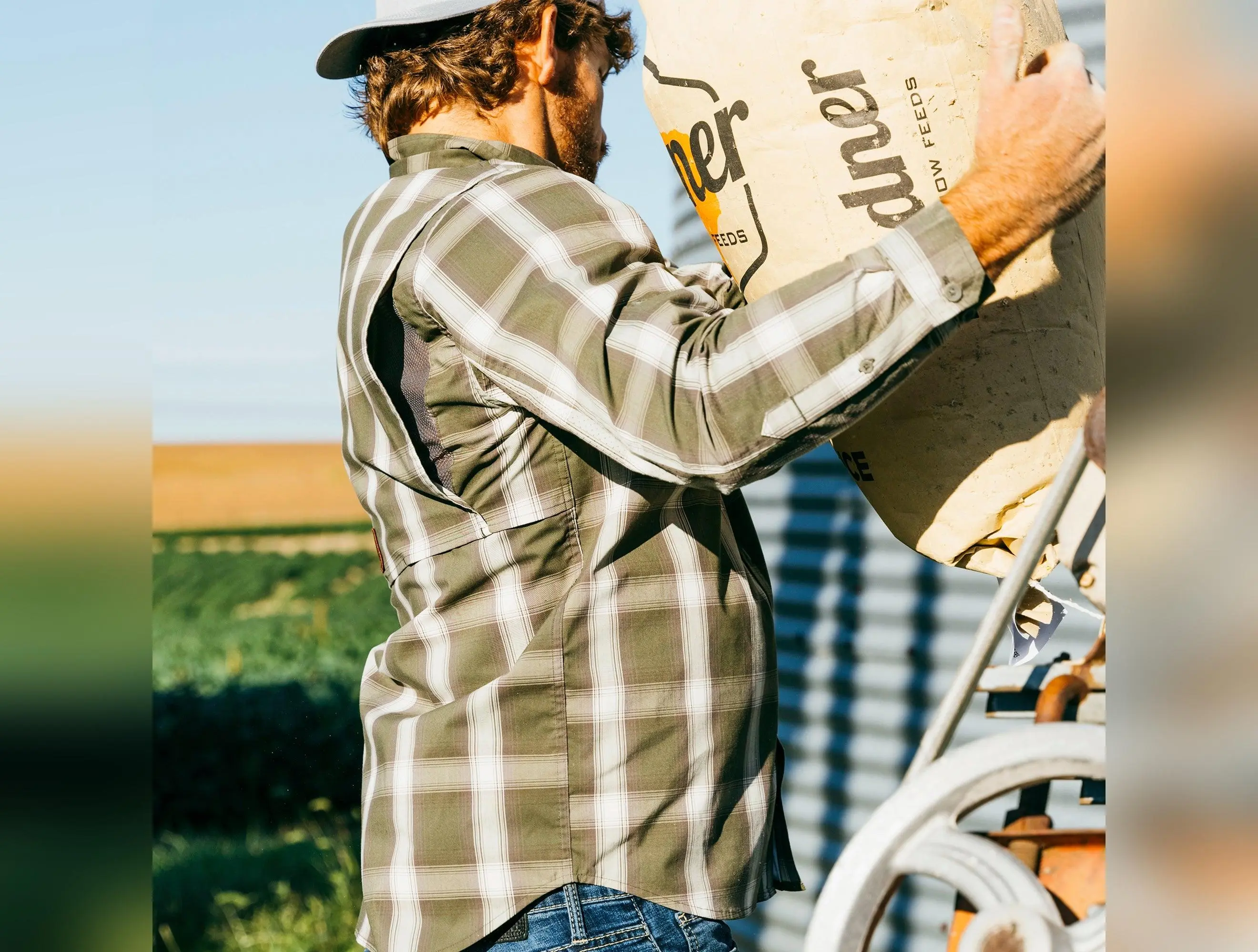The Haybaler Long Sleeve Plaid shirt elevates the iconic cape-back work shirt. This farm shirt is designed for long days tackling any jobs that comes at you. Between it's sun protection, mobility, and breathability qualities, it's the perfect tool for the farm. UPF30 sun protection Mesh Cape back Laser perforated under arms Extreme durability Moisture resistance Stain resistance Hidden zipper cellphone pocket Pen holder Hidden velcro double chest pockets Sunglass cleaner Hidden buttons under collar Anti-viral Anti-fungal Anti-bacterial Easy care Non-Leaching Interior Locker Loop Product Composition: 75% Polyester, 23% Cotton, 2% Spandex Style: A1500007