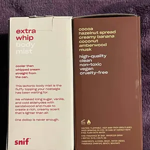 This body spray is soooooo yummy! The chocolate notes come through the strongest then hazelnut. I don’t get a lot of banana but I’m okay with that. I love Snif body sprays!