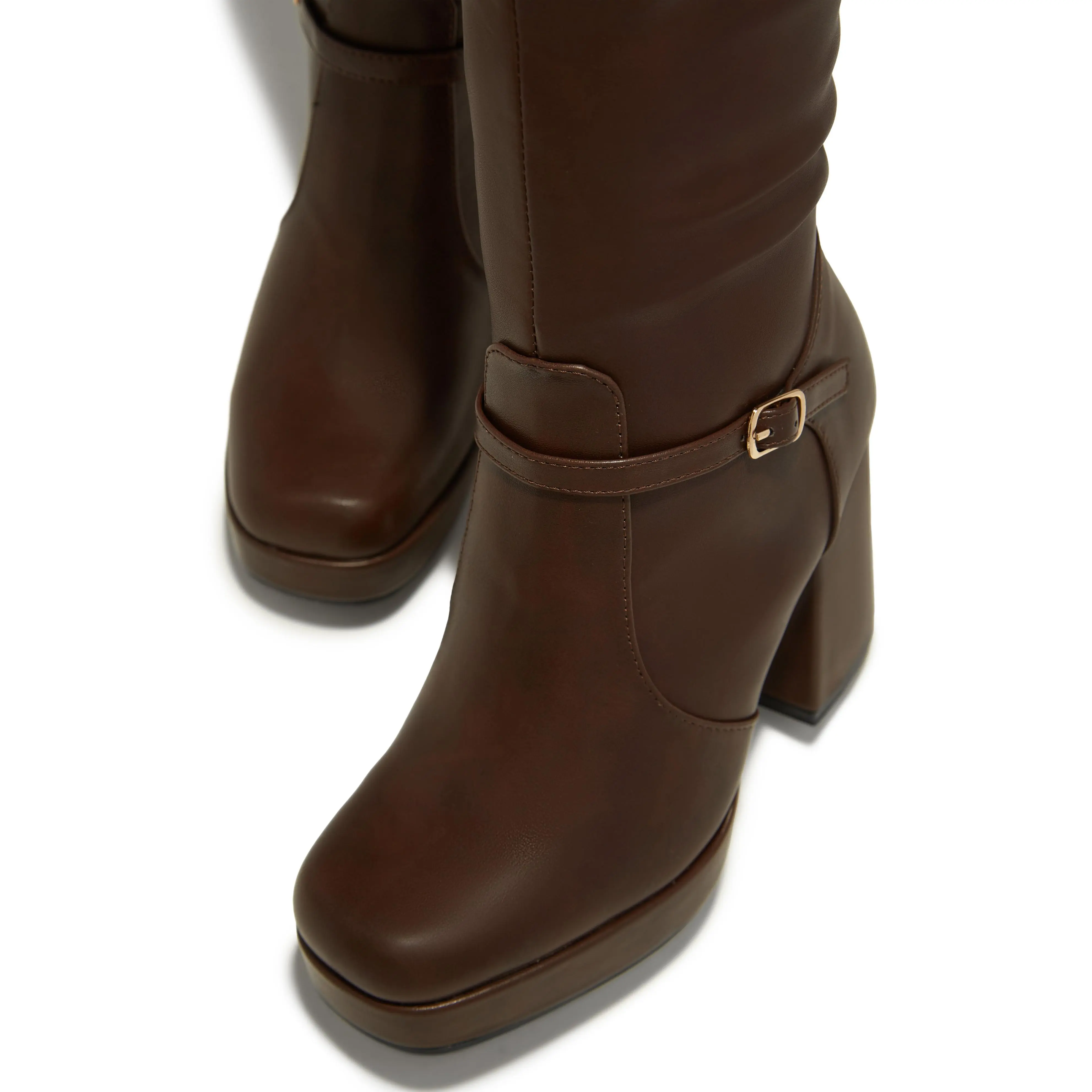 Hazelle Platform Block Heel Boots - Brown #boot #PatchworkStyle #shoesevryday #runningshoes #fyp