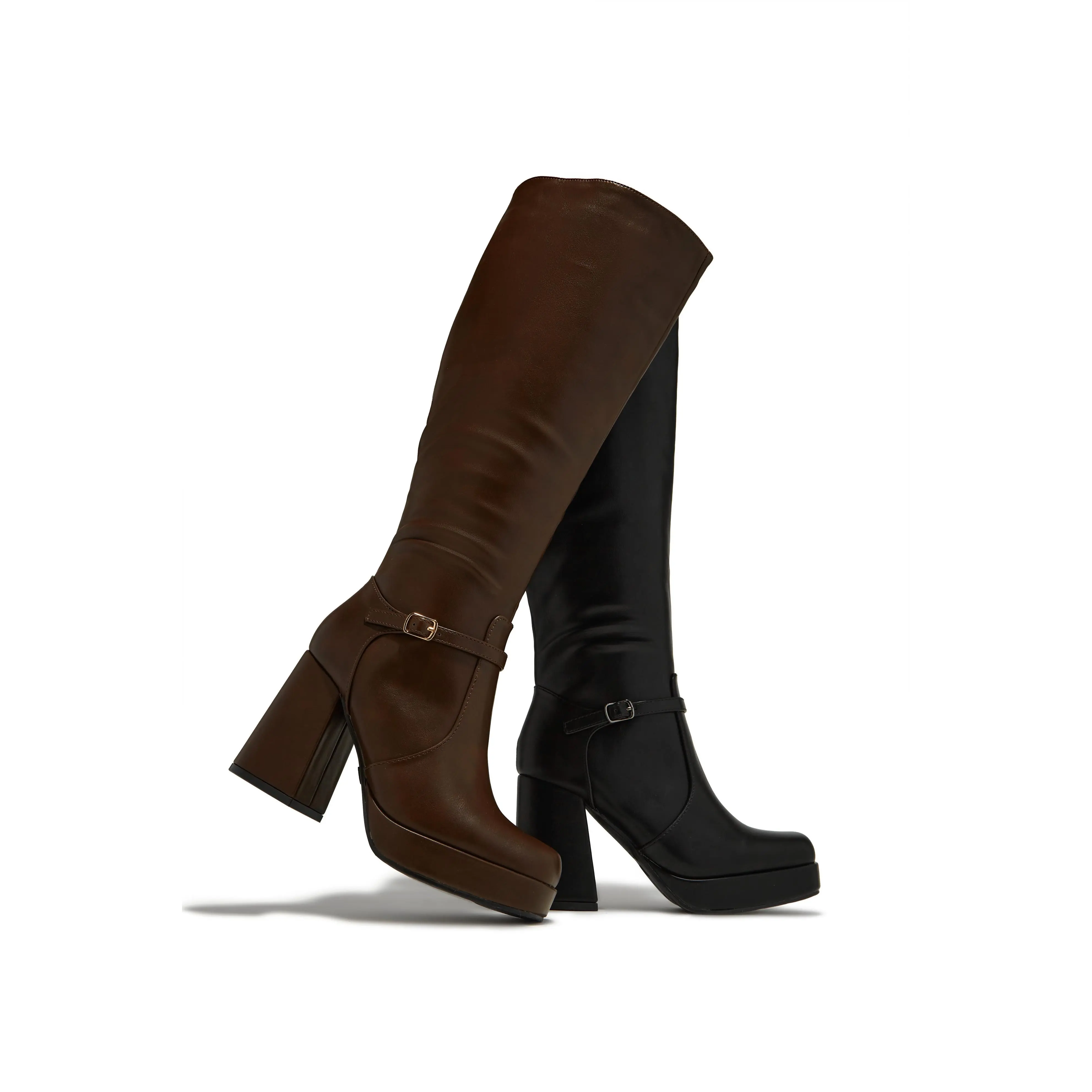 Hazelle Platform Block Heel Boots - Brown #PlatformBoots #BlockHeelBoots #HazelleBoots #WomensFootwear #fyp