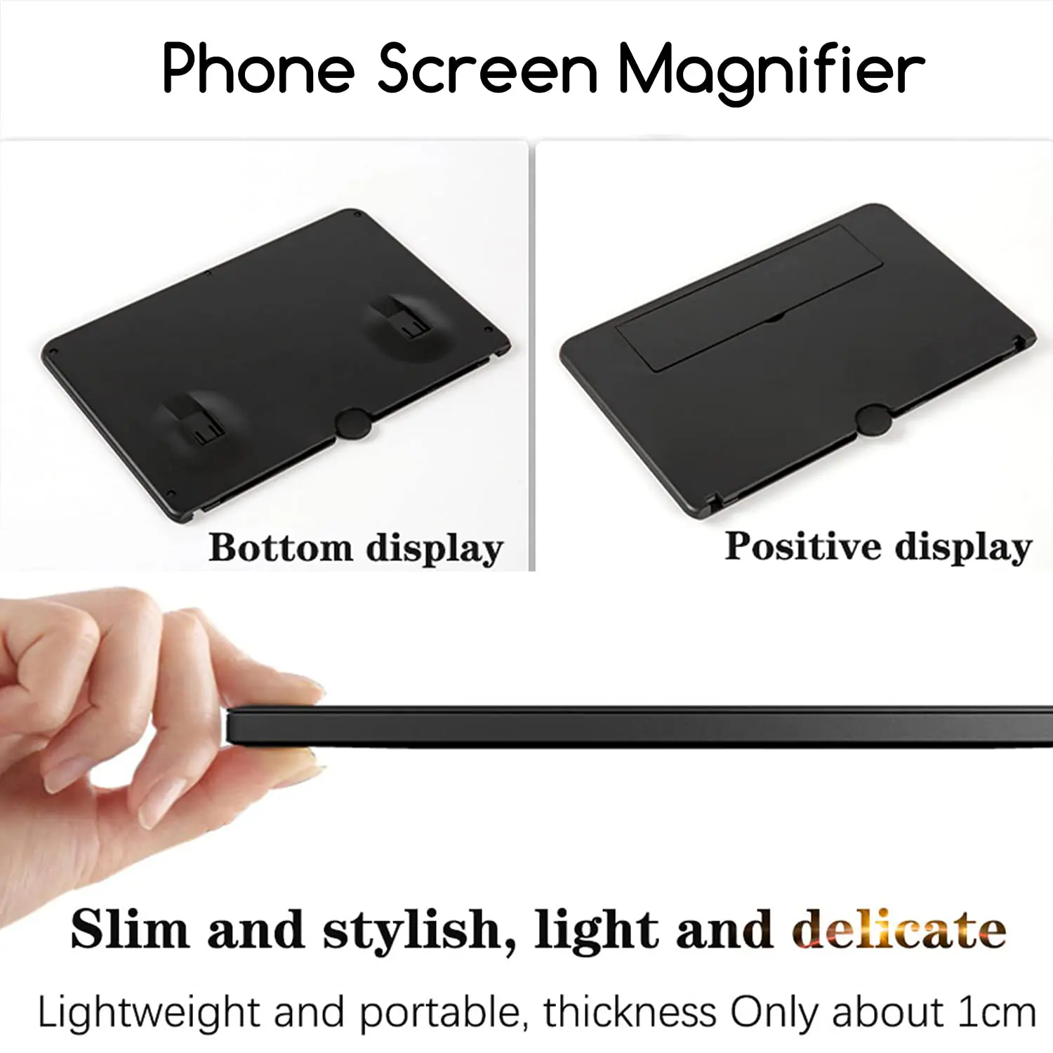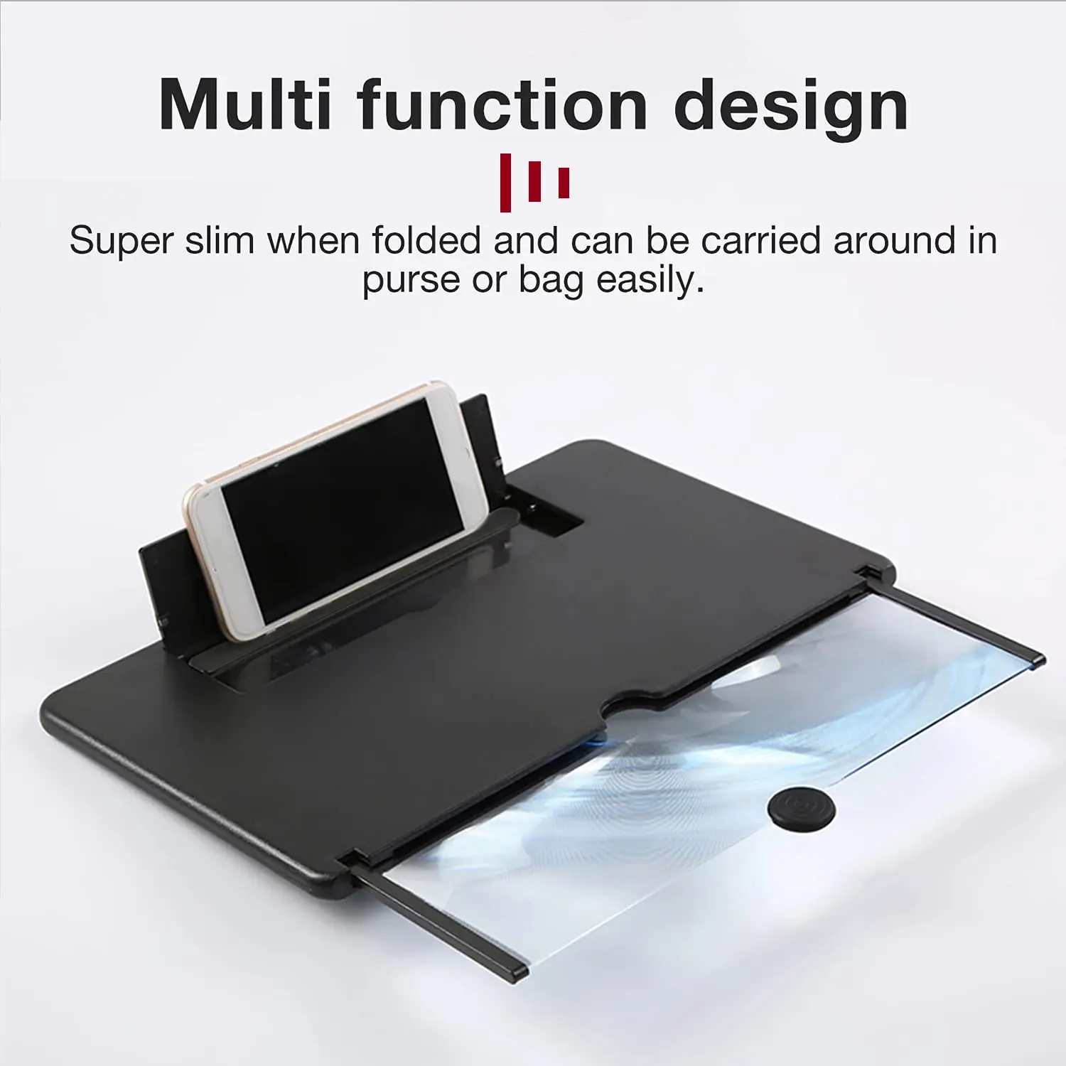 [Folding Design]: HD screen magnifier Storage type rotating folding design. Super slim when folded and also can be carried around in your bag. Suitable for indoor, camping, journey, leisure, anywhere and etc.