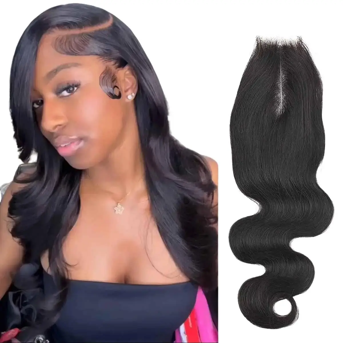 [Wequeen] 2x6 HD Lace Closure Body Wave Straight Skin-Like Closure Human Hair #1B Natural Black 14-18inch