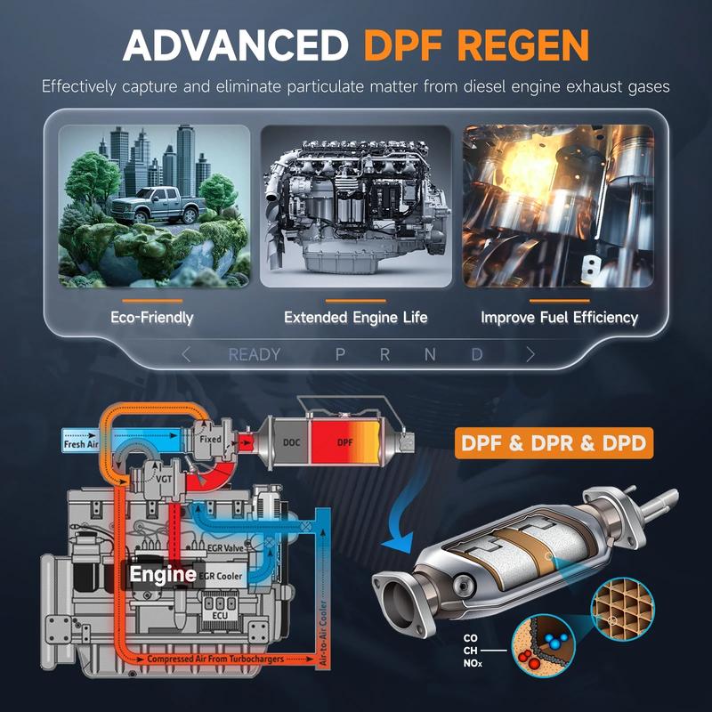 The longer a truck is in use, the more particles accumulate in the D.P.F and the more the D.P.F becomes clogged, affecting engine performance and emissions efficiency. This HD500 diesel scanner provides you with DPF regeneration, D.P.F reset, DPD, DPR status control and more functions to achieve efficient cleaning, optimise engine performance and prolong D.P.F life. Save maintenance costs by avoiding D.P.F replacement through regular D.P.F cleaning and D.P.F regeneration. All made easy with the HD500.