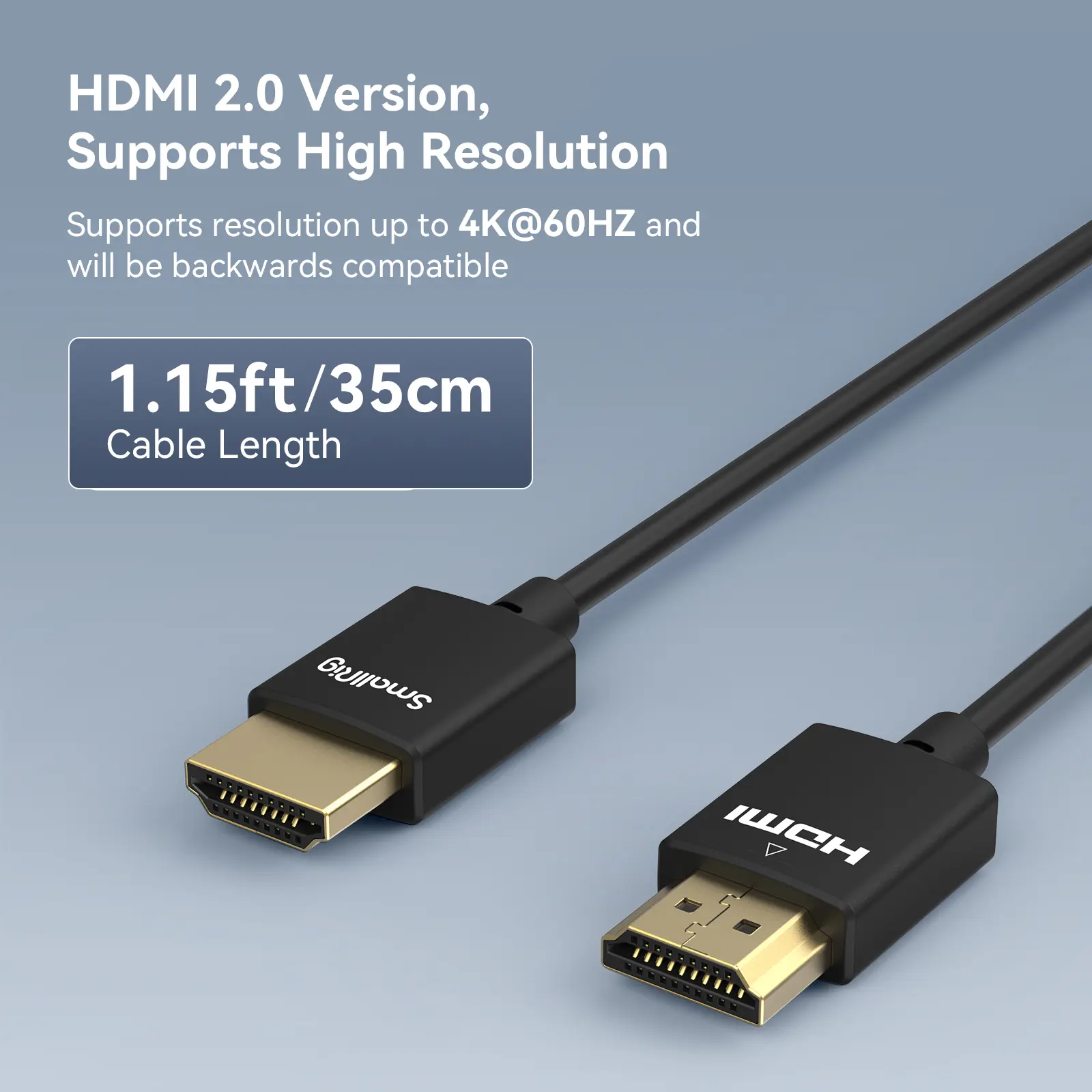 ·【Ultra Thin & Flexible】The ultra-thin and flexible high speed HDMI cable (35m/1.15ft) with 3.6mm diameter fits perfectly in tight spaces, designed for gimbal, camera stabilizer, monitor, wireless video transmitter & receiver and other devices with standard A-type HDMI interfaces to achieve high-speed signal transmission.