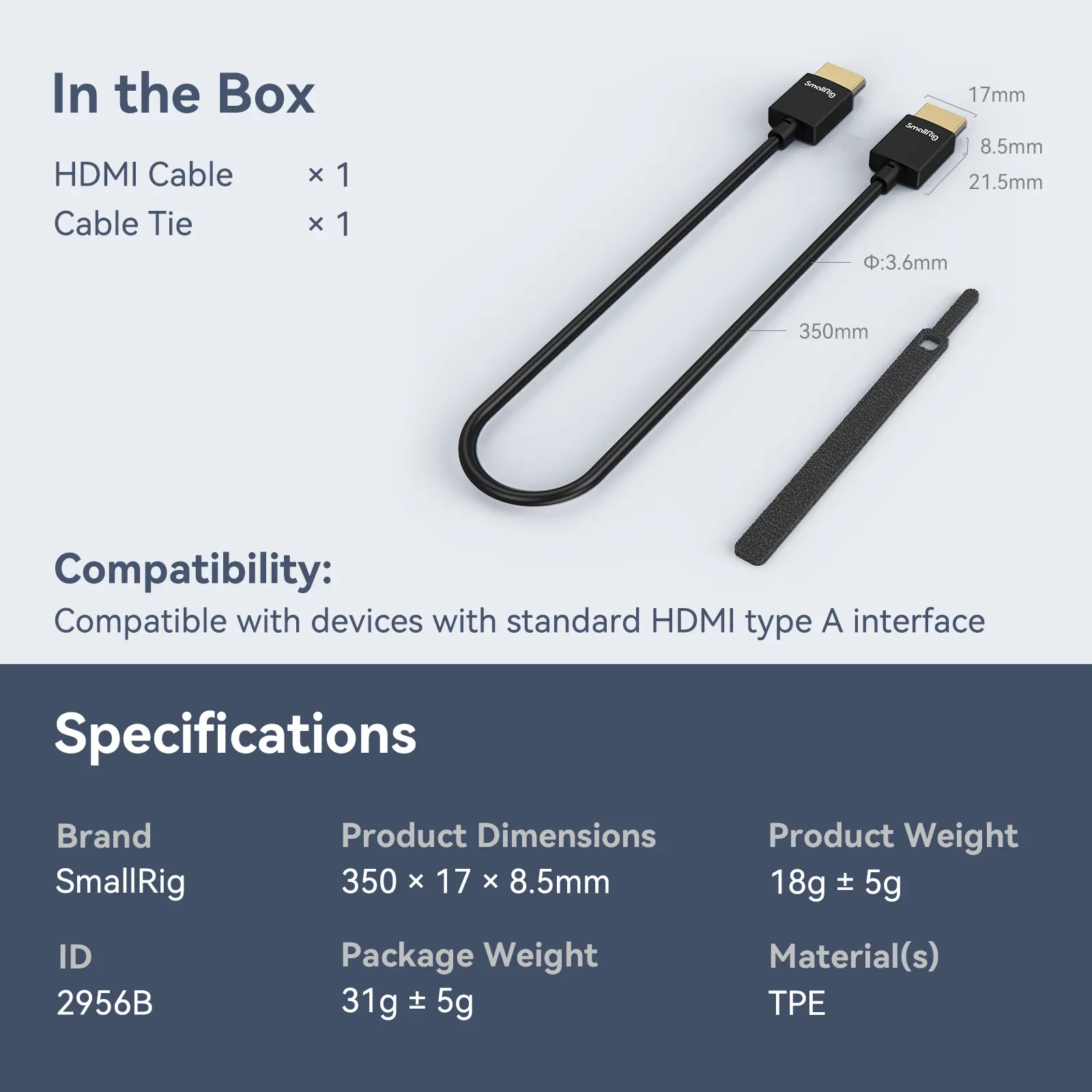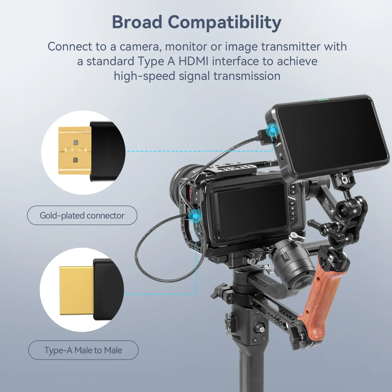 ·【Stable Connection】SmallRig HDMI connector ensures maximum data transmission and provides pure signal transmission, reliable performance for data transfer, vivid video colors and spectacular surround sound while protecting against EMI/RFI interference.