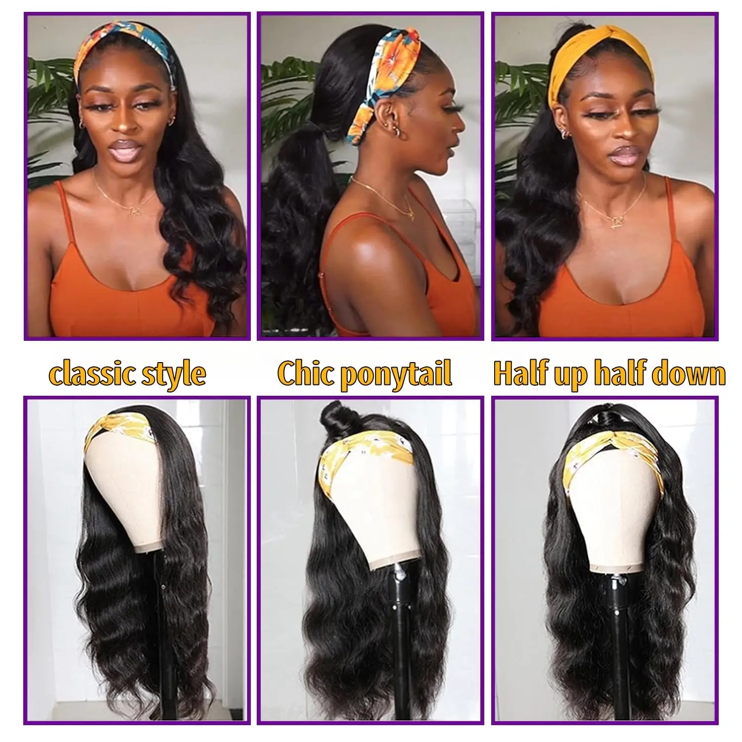 5. Bling Hair Straight Human Hair Natural Color Headband Human Hair Wigs Glueless Straight/Body Wave Human Hair Wigs For Women