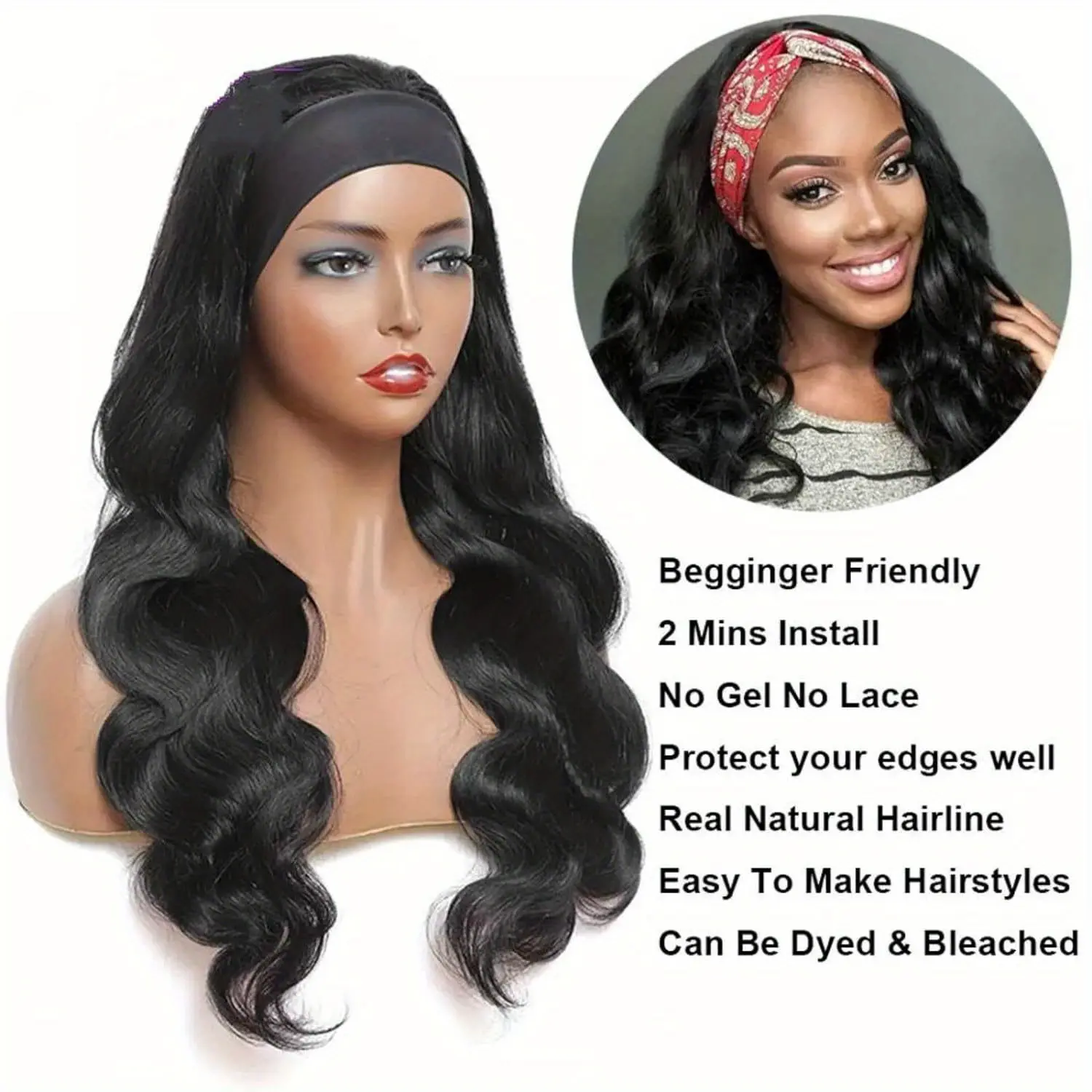Body Wave --Headband Wig, 24 inches